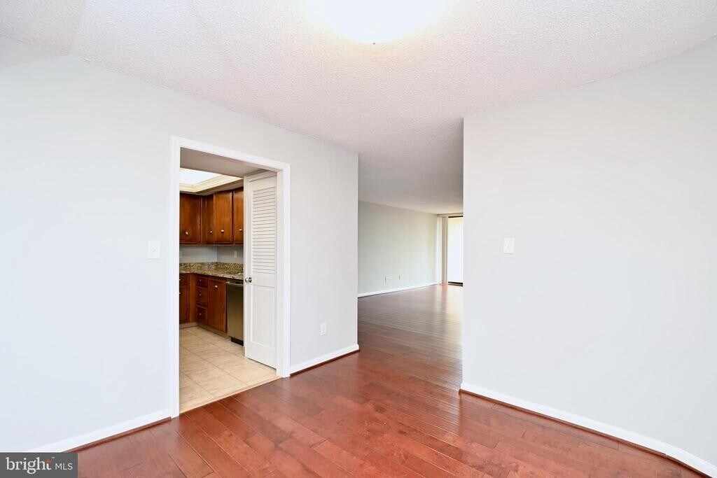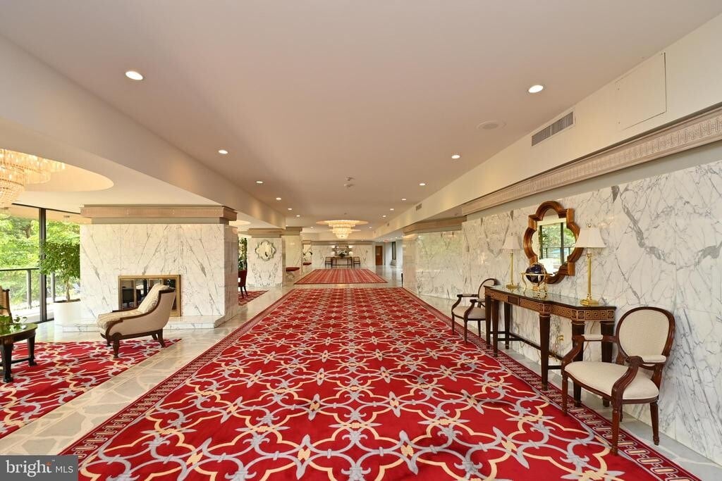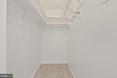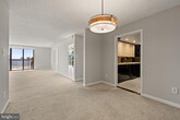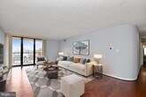 Welcome to this beautiful apartment with upscale amenities. Enter a spacious foyer with hardwood flooring and an open view. Straight ahead is the expansive carpeted living room with sliding glass doors to a long tiled balcony with views of a beautiful tree on one side affording privacy and city views on the other end. There is a separate dining room with wood floors and an elegant crystal chandelier. The kitchen features a tiled floor, quality Kraftmaid cherry cabinets, Corian countertops and new stainless steal appliances. A powder room in conveniently located close by. The master bedroom has hardwood floors, 3 walk-in closets and a desk area. The master bedroom bath is elegantly appointed with Carrara marble floors and vanity. There is a soaking tub as well as a shower. The second bedroom also has hard wood floors and a walk-in closet. The ensuite bathroom has a tub/shower. Next to the unit is a utility closet with the HVAC and the hot water heater. In addition, there is a storage room on the same level a few steps from the unit, as well as a caged storage on the lower level. The home comes with two garage spaces. But there is also dedicated visitor parking outside as well as street parking for guests available. The Representatice is a luxury high rise building with 206 units. The beautiful lobby exudes elegance. There is a 24 hour concierge. Amenities include a resort-like swimming pool with a pool-side Happy Hour every Friday in Summer, a fitness center, sauna (under construction), party room, even a community herb garden, bicycle storage and a car wash area. The location can't be beat. The Pentagon Metro station is about a 10 minute walk away as well as the Fashion Centre at Pentagon City, a short distance to Pentagon Row shops, Whole Foods, Harris Teeter as well as many restaurants. The rent includes water and amenities. Tenant pays electricity.