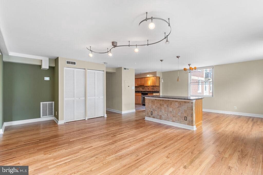 Largest one bedroom floorplan in building. Great per square foot value in secure, full-service elevator high rise. 24-hour front desk, on-site resident manager. Parking available in secure attached underground garage for additional fee. 24-hr parking attendant. Hardwood flooring throughout. Kitchen open to living space. Central a/c. Great location close to Penn station in heart of arts and cultural district. Near shopping, dining, higher ed and arts institutions.