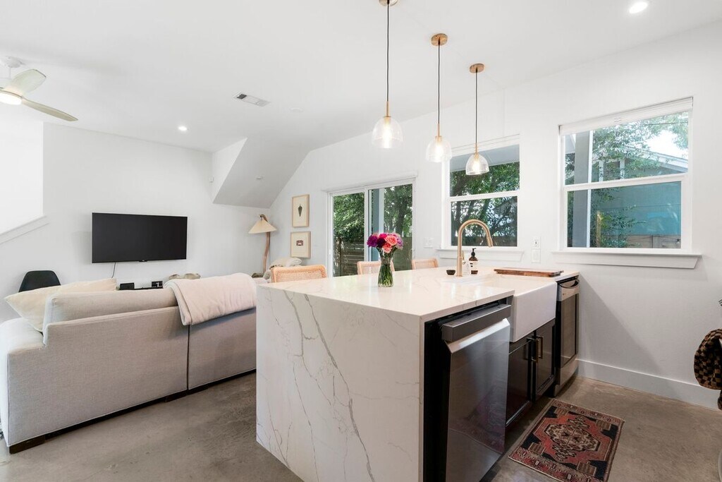 Located in East Austin’s vibrant Govalle neighborhood, this modern home offers the perfect blend of style, comfort, and convenience. Step inside to bright, open living spaces designed with contemporary finishes; waterfall countertop, electric roller shades, wine reserve and thoughtful details throughout. The insulated garage, complete with its own mini-split system, doubles as a flexible workspace, studio, or home gym. A large patio extends your living area outdoors, perfect for dining and entertaining. Just a short stroll to East 7th Street, minutes from H-E-B, and surrounded by some of Austin’s best restaurants, coffee shops, and bars, with Town Lake and outdoor trails close by, you’ll enjoy both convenience and charm right at your doorstep.