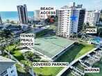 Taken for SEASON 2027 but available May 1 to Dec '26 and April '27 forward. Gulf & Bay Views! Private Beach Access! Step into a realm of sophistication as you enter this spacious three-bedroom corner unit in a great Community with many Amenities. Floor-to-ceiling,wrap-around (hurricane-grade) glass doors showcase sparkling views of the Gulf and mesmerizing sunsets from inside or out on the huge surrounding screened balcony. As you move through the condo,you'll arrive at the den (or second of 3 bedrooms),featuring a picture-perfect view of the Bay outside. What an inspiring space to work,write or do your yoga! Many of you will head for the beach across the street via a private access walkway but others may indulge in the array of resort-style amenities available at your doorstep. Relax at the twinkling Bayside pool,unwind in the Jacuzzi,keep up with your fitness routine in the gym or out at the rooftop tennis & pickleball court. Enjoy neighboring upscale beach dining along esteemed Gulf Shore Drive whether at the Ritz-Carlton,the LaPlaya Hotel,or The Turtle Club. Reserved covered parking space in a Detached garage,many Social activities.