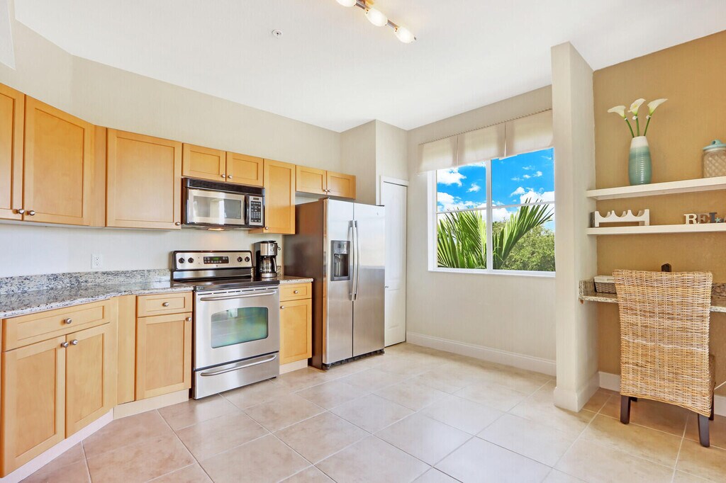Desirable Legacy Place 1/1 condo. Beautiful, light and bright, 3rd floor. New renovation with vinyl plank flooring, custom shaker cabinets, quartz counters in kitchen and bath. The community has been newly painted and well maintained. Pool, spa and clubhouse includes a fitness center. There are onsite tennis courts and a playground. This condo feels like a loft. Located on the third floor with inside stairway. Southern exposure. This location is close to dining, shopping, and major highways. Downtown and the Gardens Mall nearby. All that PGA Blvd has to offer! Great lifestyle...like being on vacation everyday.