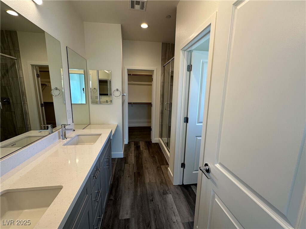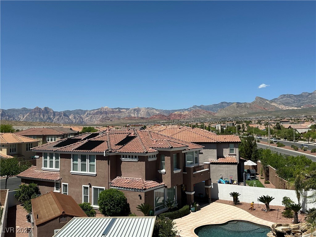 Welcome to this nearly new, impeccably maintained 4-bedroom, 5-bathroom townhome in a gated community in Summerlin. Built just one year ago, this spacious three-level home offers over 1,757 square feet of stylish living space. Each of the four bedrooms includes its own private en-suite bathroom, making it ideal for multi-generational living, roommates, or hosting guests in comfort and privacy. Enjoy sweeping views of the Red Rock Mountains and city lights from multiple levels. The home features an open-concept design, stainless steel appliances, all-electric energy-efficient systems, and a two-car attached garage. Located just minutes from outdoor adventures and urban conveniences, this gated community also offers a sparkling pool and ample guest parking. Modern, move-in ready, and thoughtfully designed—this townhome checks every box