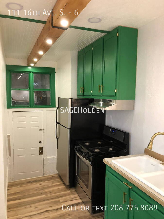 For Rent in Nampa: All utilities included! A newly remodeled studio apartment. This apartment comes packed with cool features! From the custom bar against the original brick chimney, to the box beams and original oak flooring in the living area. Extra tall ceiling and lots of natural light! Located just a few minutes from downtown Nampa and the highway! Washer and dryer included!