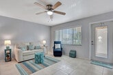 Beautifully renovated, ground floor, 1br 1 ba, located in a sought-after 55+ intracoastal community. Updated kitchen and bathroom. Newer A/C. Spacious bedroom with private screened patio overlooking the canal & boats. Accordion hurricane shutters for peace of mind during storms. Impact glass front door with built-in blinds. Premium location in the building, with a covered entry that keeps the front door out of the elements and provides privacy from the parking lot. Prime parking space in front of the unit. Rent includes water, sewer & basic cable. Wifi is available for $55/mo from T-Mobile. Immaculate laundry room is directly across from the condo. Private storage closet for all your extras like luggage, holiday decor, etc.