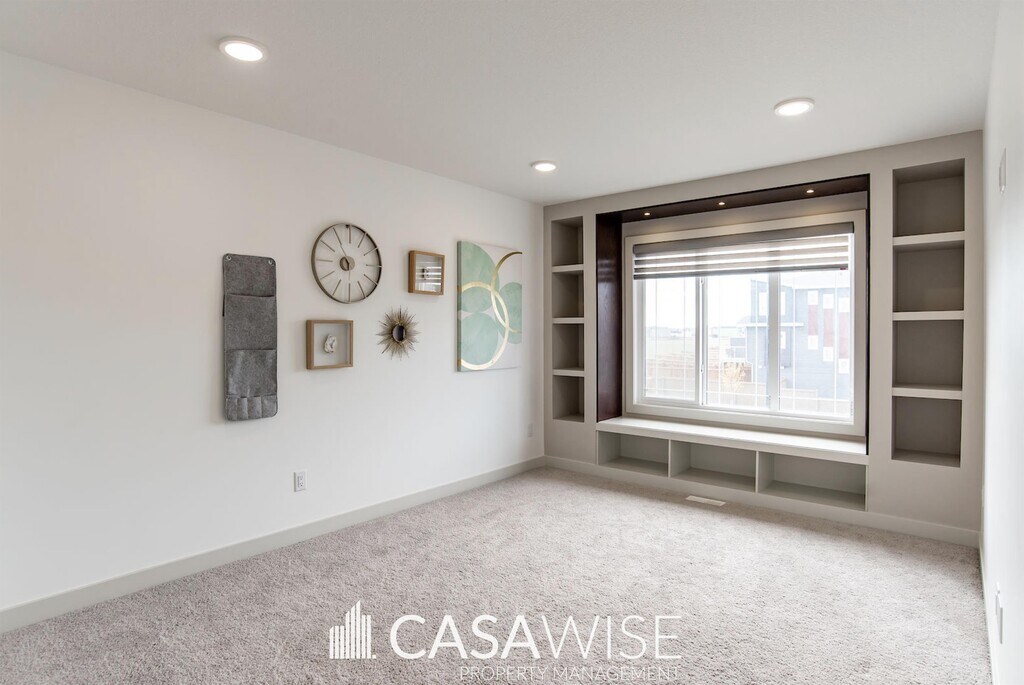 BEAUTIFUL 3-Bed+Den/3-Bath Home With a HEATED GARAGE & A/C! IMMACULATE former SHOWHOME in Glenridding Ravine! Exceptional attention to detail and modern finishes throughout. ? Open-concept floor plan with dramatic open-to-below living room. ? Modern kitchen with quartz countertops, gas range, and stainless steel appliances. ? Walk-through pantry and spacious mudroom on main floor. ? Elegant floor-to-ceiling fireplace. ? Den / 4th bedroom with built-in Murphy bed. ? Full main floor bathroom. ? Master bedroom with 5-piece ensuite, separate His & Her sinks, quartz counters, soaker tub, and a stand-up shower. ? Two additional spacious bedrooms. ? Full upper level bathroom. ? Bonus room with oversized window and built-in shelving. ? Central air conditioning. ? Sleek vinyl plank, tile, and cozy carpet flooring throughout. ? Heated front attached double garage for added convenience. Utilities, snow removal, and lawn maintenance are tenant's responsibility. One small pet is negotiable with a fee of $50/month. Pet approval is at the time of the application and not guaranteed thereafter. No Smoking. Professionally managed by Casawise Property Management Only applications received through our site will be processed: If interested, please provide us with your name, phone number, available times for viewings and a little background about you (when do you need the unit for, how many people would be living in the unit, etc.). Thank you! **Disclaimer: Photos are of the furnished show home. This home does NOT come furnished**