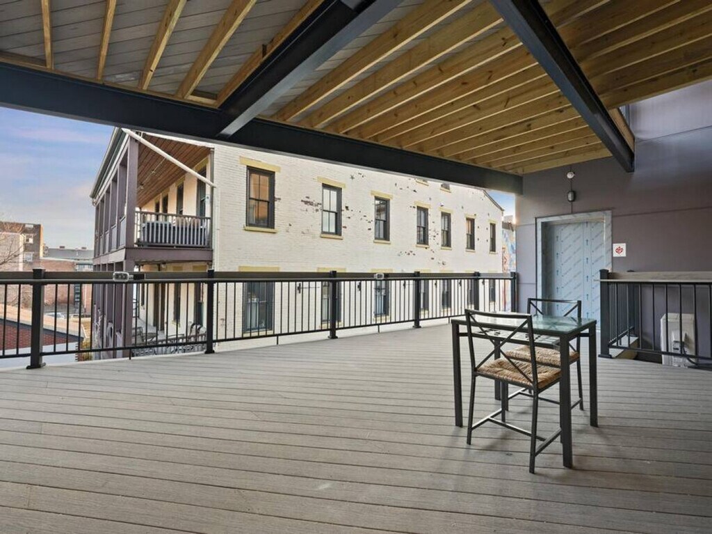 Modern conveniences meet historic charm in this private, spacious condo with elevator access directly to your side deck. Enjoy the patio, comfortable amenities, and a prime location near Findlay Market, Washington Park, and dozens of restaurants, cafes, and pubs. This historic condo has been renovated top to bottom with modern conveniences while keeping the historic elements intact, including large, arched windows and exposed brick accents. The huge open living and kitchen area makes for great socializing with your friends. Wake up and take your morning coffee on the deck outdoors, listening to the birds and reading or journaling to start your day. Enjoy the working gas fireplace and awesome kitchen. The building does not have private parking, but there is a garage at Washington Park and an inexpensive pay lot a 5-minute walk away. Free parking is available with one monthly garage pass for stays of 21 days or longer, located about a 3-5 minute walk away. Our neighborhood, Over the Rhine, is home to Cincinnati's best and most numerous bars, restaurants, cafes, parks, and even two breweries within walking distance. We're walking distance to Music Hall and the spaces where the Opera, Ballet, and Symphony play. If you're here for the baseball game, Great American Ballpark is just over a 1-mile walk, or you can hop on the Streetcar a few blocks away. We're also one of the country's largest intact historic neighborhoods, with an absolutely beautiful stock of charming Italianate architecture. No open flames of any kind are permitted, including but not limited to candles, with the exception of the gas range appliance. The elevator has an emergency assistance button, and pressing it unnecessarily will result in a $2,000 fine. Quiet hours are from 9:30pm to 8am, and amplified music is strictly forbidden without advance written consent. Smoking or lighting anything in the property is prohibited, and violations will incur a $300 cleaning fee. Throwing unauthorized parties is considered criminal trespassing under Ohio Revised Code and Cincinnati municipal code, and may result in prosecution. A $170 re-keying fee applies for unreturned keys. Additional fees may apply for excessive pet hair, stains, or deep cleaning. Same-day reservations require prior contact, and failure to do so may result in denied entry. [SI]