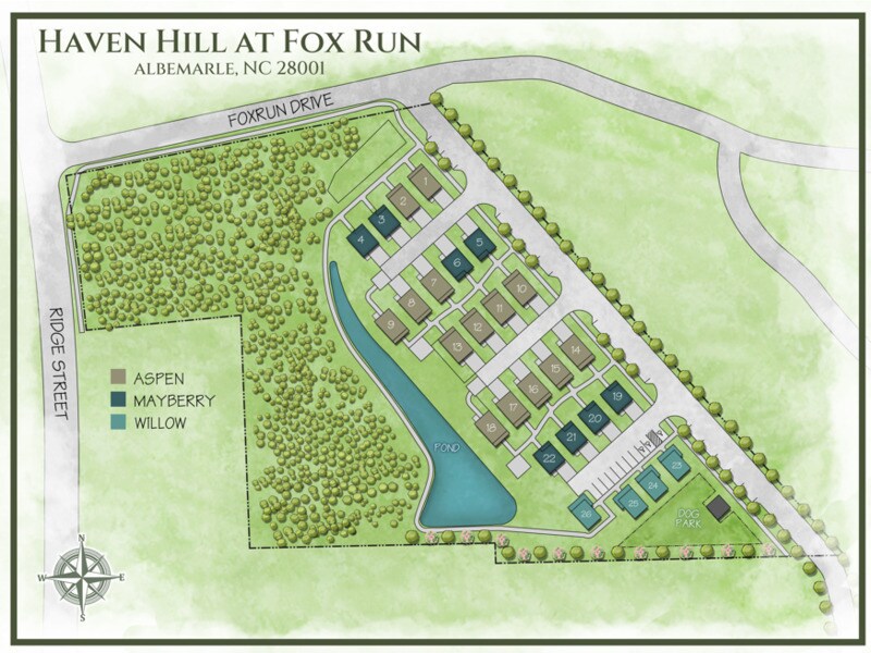 Units available February 2026, email for further details. Visit for more info! Welcome to your brand new, luxury home! Haven Hills at Fox Run is a new cottage-style rental home community coming to Albemarle, NC, located at the corner of Foxrun Drive and Ridge Street. This thoughtfully designed neighborhood will include 22 single-family homes and 4 paired duets, offering a mix of 1, 2, and 3-bedroom layouts. Each home features quartz countertops, shaker-style wood cabinets, luxury vinyl plank flooring, and charming front porches that face beautifully landscaped green space. All homes are pet friendly and built to net-zero energy standards for top-tier efficiency and healthy indoor air quality. The community includes a walking trail, outdoor BBQ areas, a dog park, and a tot lot playground—all set within a professionally maintained neighborhood. Plus, every home is fully maintained by our team, so residents can enjoy the beautiful benefits of this community! Amenities included but not limited to: Dog Park, BBQ Grills, Walking Trails, Tot-Lot Playground, Landscaping, Pest Control, Doorbell Cameras, Washer/Dryer Units, Solar Utilities Panels, and MORE! TECH PACKAGE Includes: o Ring Camera with motion detection and remote viewing o High-speed, easy-to-setup internet + streaming o Smart home thermostats o Keyless keypads Conveniently located just minutes from downtown Albemarle, Morrow Mountain State Park, and the Uwharrie Lakes, with easy access to Charlotte and the Piedmont Triad. 1-Bedroom | $1,575/mo. | 708 sqft. 2-Bedroom | $1,750/mo. | 1052 sqft. 3-Bedroom | $1,990/mo. | 1320 sqft. *Flat Utility Fee + Tech Package will be applied in addition to rental rate.* - Visit for more info! Scroll to view our home renderings, floorplans, and location map - INQUIRE TODAY!