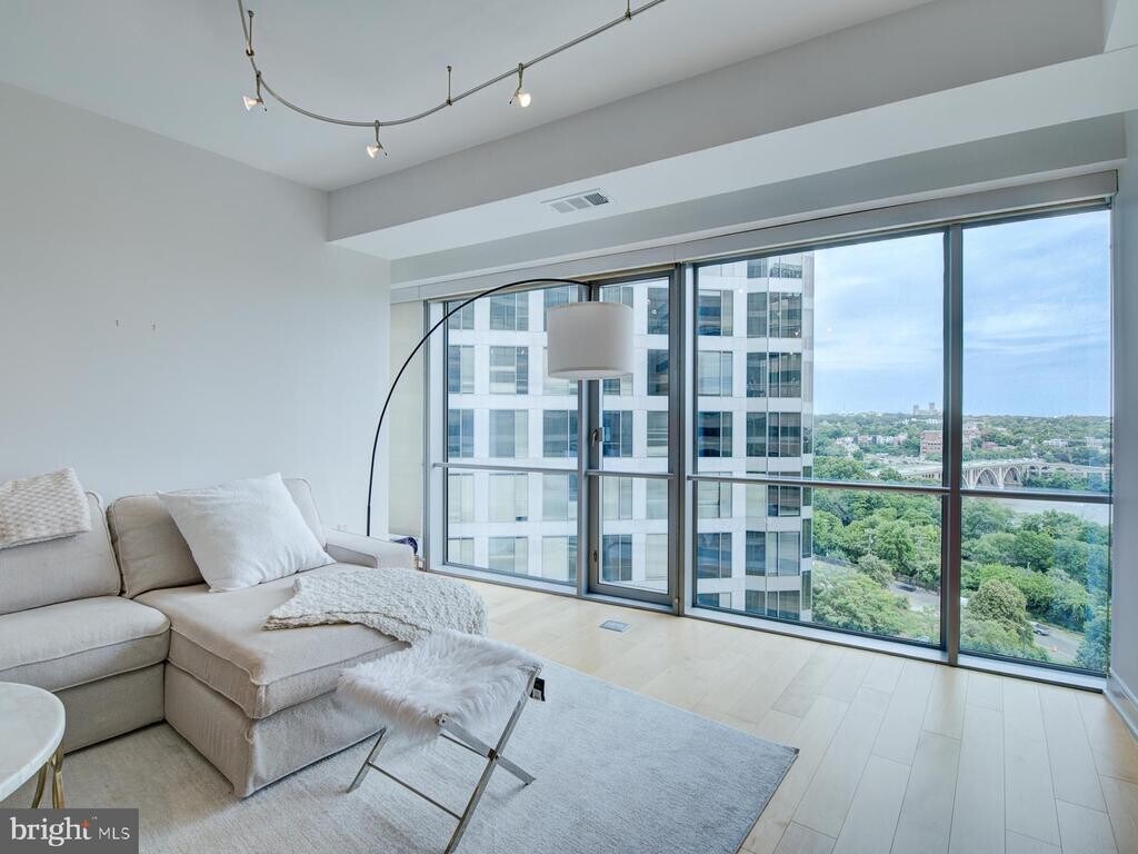 Just listed, rarely available One Bedroom + Den, fully furnished Condo, with a gorgeous view of the Potomac River and iconic sights of Washington, DC. The boutique condo building, the Waterview, is Just two blocks from Metro. Heat, gas, water, Fios High-Speed internet, world-class Gym 24/7, 1-car garage parking, 50" 4K curved TV, and custom-made high-end furniture from Europe are included. Seat and enjoy a breathtaking panoramic view of the Potomac River, Key Bridge, Georgetown, and Cathedral from the 18th-floor unit. Floor-to-ceiling windows flood this unit with natural light. Enjoy a fully equipped Gourmet kitchen with top-of-the-line appliances (Viking, Miele, SubZero, Bosch) and beautiful off-white granite countertops, gleaming hardwood floors throughout, marble bath. Stunning views of iconic DC monuments, the Potomac River, and The Kennedy Center from the renowned Rooftop Terrace with two outdoor kitchens, a lounge, dining areas, and a fire pit. Full-service hotel amenities, restaurant, room service, 24/7 concierge, security, spa, and state-of-the-art fitness center. One of the best public schools in Arlington. Bike to Mount Vernon and Alexandria marina or walk to the Theodore Roosevelt Island, Georgetown Riverfront, or Lincoln Memorial for fresh air. Minutes to DC, Pentagon/Amazon HQ. Ideal for Diplomats. Owner is a realtor.