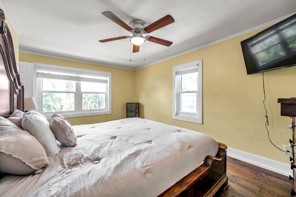 NOW AVAILABLE OCTOBER 1 2025- DEC 15 2025 —this beautifully furnished 3-bedroom, 2-bath home in North Kenwood offers the perfect blend of comfort, space, and privacy. Enjoy an open layout with warm wood flooring, a fully stocked kitchen, and comfortable sleeping arrangements for up to six. The layout includes a king bed, two twins, and a queen pull-out, making it easy to settle in whether you're here solo or with company. Step outside to your private backyard oasis featuring a multi-level deck, grill, smoker, fire pit, and a sparkling above-ground pool—surrounded by tropical landscaping and complete privacy. All utilities except wifi are included. The home comes move-in ready with linens, cookware, and smart TVs—just bring your suitcase. Conveniently located minutes from downtown St. Pete, the Grand Central District, and a short drive to the beaches, this home is ideal for anyone needing a stylish, stress-free place to land.