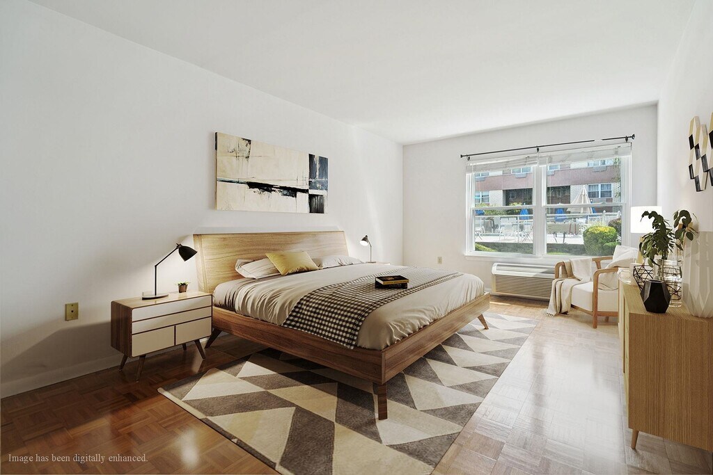 JIA YAN MONACOSpacious 970 sq ft 1-bedroom, 1.5-bath condo with a private balcony, ideally located just five minutes from the George Washington Bridge and steps from NYC transportation. Set along the Hudson River waterfront and adjacent to Veterans Field, this home offers unmatched access to scenic parks, shopping, and top-rated dining.Situated in a well-maintained condominium complex consisting of two buildings—each with its own beautifully landscaped central pool. Residents enjoy a range of amenities including outdoor swimming pools, a sauna, updated laundry facilities on each floor, 24/7 gated security, bike storage, and on-site management. Spectrum cable and water are included in the rent. Rental includes two dedicated parking spaces for added convenience.