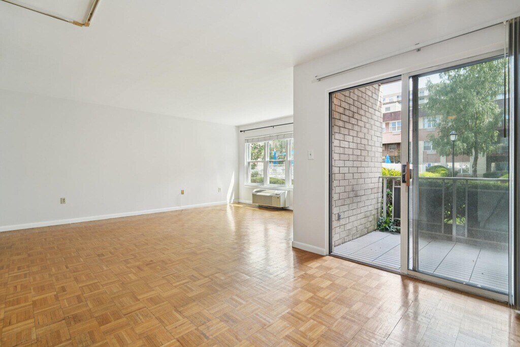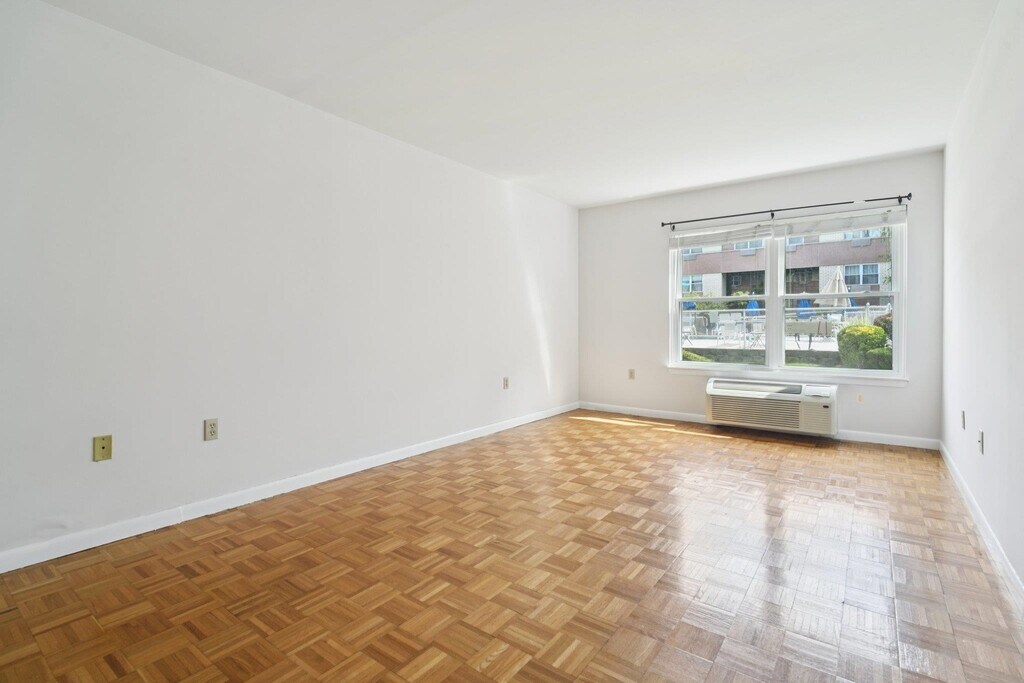 Welcome to WATERSIDE, a gated waterfront community. Spacious STUDIO apartment with Terrace located on 3rd Floor. Parquet Wood Floors. Ideal location with NYC bus in front of complex and 1 Block to Edgewater Ferry. Within minutes away to shops, restaurants, and Whole Foods. Waterside Gated Condo Community features Outdoor pool, and laundry on site. INTERNET, CABLE & 1 OUTDOOR PARKING SPACE included in the rent. The move in/out fee are: $1000 non refundable, $200 non refundable admin fee, and $1500 refundable security deposit. No pets per complex pet policy.