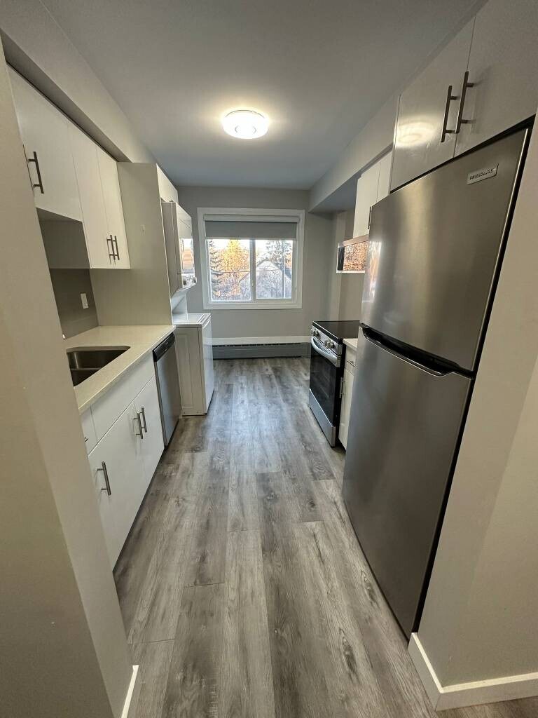 -Fully renovated 1-bedroom apartment - Equipped with all stainless steel appliances, dishwasher microwave, in-unit washer and dryer - Immaculately cleaned with new vinyl plank flooring - Freshly painted with a modern aesthetic - Kitchen and bathroom featuring elegant granite countertops - Soft-close drawers and cabinets for added convenience - Upgraded building with comprehensive renovations - Beautifully landscaped surroundings, perfect for summer enjoyment - Safe and inviting area for walking and exploration - Just a 1-minute walk to an ice cream shop, café, and much more - Close proximity to Whyte Ave and only a 5-minute drive to the University of Alberta Abundant amenities nearby, ideal for students or couples - Available: May 1st Location: Melba Apartments 11 - 11110 68 Ave Edmonton AB T6H 2C2 -In suite laundry -Heat and water included - Perfect for those seeking peace and tranquility in a vibrant community Don't hesitate to contact me this unit won't last long!!! Fully Renovated 1 Bedroom + Den Apartment – $1,500/month Location: 11110 68 Ave Availability: Immediate move-in Step into modern comfort with this beautifully renovated 1 bedroom suite located in a quiet, well-maintained building. Perfect for professionals or small families seeking style, convenience, and quality. Suite Features: New stainless steel appliances, including dishwasher and microwave In-suite washer and dryer Modern vinyl plank flooring throughout Quartz countertops in both kitchen and bathroom Soft-close cabinets and drawers for a sleek finish Freshly painted with a neutral, contemporary palette Bright and spacious layout with large windows for natural light Building & Surroundings: Fully renovated exterior and common areas Beautiful landscaping, ideal for enjoying summer outdoors Located in a safe, walkable neighborhood Just 1 minute from a local ice cream shop, café, and more Rent includes: Heat & Water Parking available Book your viewing today! Direct Message or: www.mginvestments.ca Office: