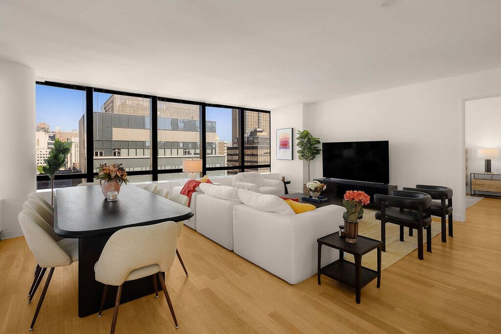 Feel at home in this sun-drenched, 15th-floor, three-bedroom Upper East Side apartment with sweeping views of the city. This 3-bedroom/3-bath residence offers unparalleled luxury in the heart of New York City and is located in a full-service luxury building. From the moment you enter, natural light pours into the apartment through floor-to-ceiling windows, illuminating a spacious living and dining area. The living room features high ceilings, a full-size seating area with oversized furniture, and a large dining table. Complete with a smart TV and blazing-fast Wi-Fi, this apartment also offers connected access to streaming services. All three spacious, windowed bedrooms feature high-end furniture, comfortable mattresses and bedding, and ample closet space. Two bedrooms offer en-suite bathrooms with soaking tubs, while the third full bathroom sits just inside the apartment’s entrance. Additional highlights include a full-size washer and dryer, hardwood flooring throughout, high-speed internet, and abundant storage. Residents also enjoy access to a tranquil indoor pool, modern fitness center, resident lounge, and 24-hour concierge service. Concierge service can coordinate cleanings and private events. Private chefs and excursions can also be scheduled. Perfectly situated in the Upper East Side, this apartment places you moments from Central Park, Museum Mile, fine dining along Madison Avenue, and world-renowned cultural institutions. Utilities are included in the listed price (Wi-Fi, electric, heat, etc). Excessive use of A/C (exceeding $250/month) will be billed back to guests. Smoking is not allowed in the apartment.