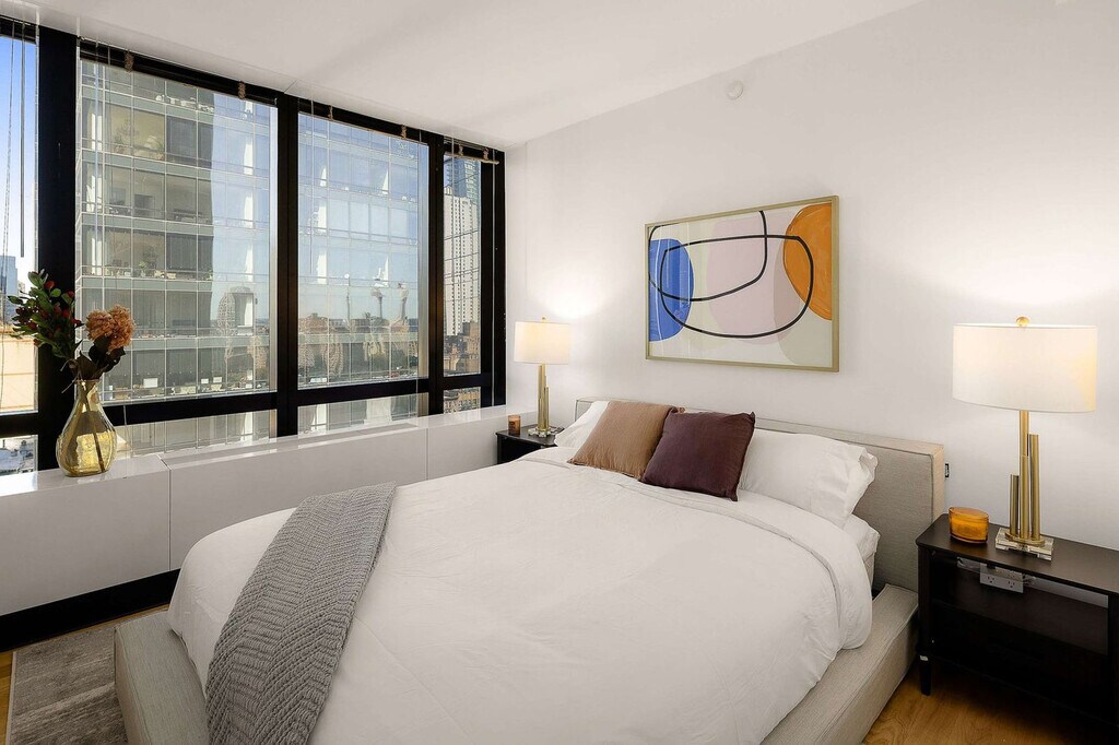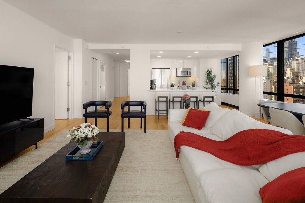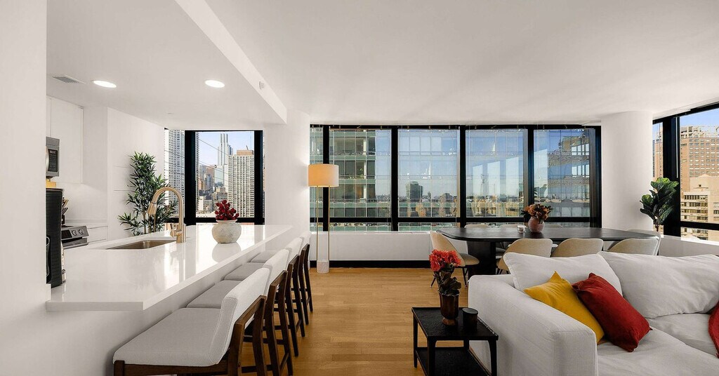 Feel at home in this sun-drenched, 22nd-floor, three-bedroom Upper East Side apartment with sweeping views. This 3-bedroom/3-bath residence is located in a full-service luxury building with an elevator and doorman. From the moment you enter, natural light pours into the apartment through floor-to-ceiling windows, illuminating a spacious living and dining area with panoramic city views. The living room features high ceilings, a full-size seating area with oversized furniture from brands including Restoration Hardware and Arhaus, and a large dining table. Complete with a smart TV and blazing-fast Wi-Fi, this apartment also offers connected access to streaming services. All three spacious, windowed bedrooms feature high-end furniture, comfortable mattresses and bedding, and ample closet space. Two bedrooms offer en-suite bathrooms with soaking tubs, while the third full bathroom sits just inside the apartment’s entrance. Additional highlights include a full-size washer and dryer, hardwood flooring throughout, high-speed internet, and abundant storage. Residents also enjoy access to a tranquil indoor pool, modern fitness center, resident lounge, and 24-hour concierge service. Concierge service can coordinate cleanings and private events. Perfectly situated in the Upper East Side, this unit places you moments from Central Park, Museum Mile, fine dining along Madison Avenue, and world-renowned cultural institutions. Smoking is not allowed on the property. Excessive use of A/C (exceeding $250/month) will be billed back to guests after move-out.