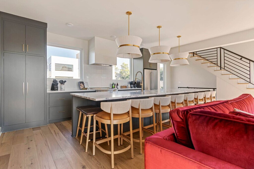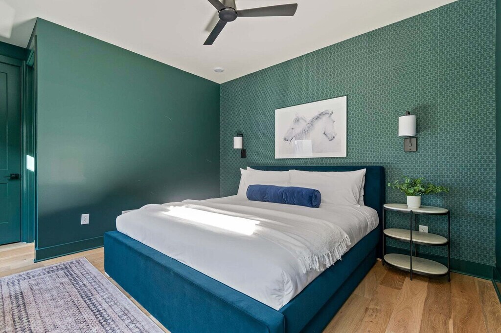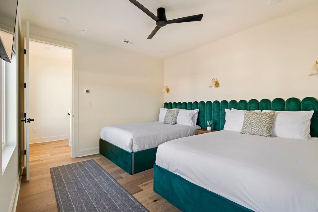 Feel at home in The Ashford, a brand-new luxury townhome nestled in the vibrant Wedgewood-Houston Arts District. Designed for groups seeking a stylish retreat close to downtown, The Ashford pairs sleek modern design with the comfort and warmth of home. Enjoy skyline views from your rooftop lounge, unwind by the firepit, and experience Nashville’s creative spirit just steps from your door. This home offers a rooftop oasis with outdoor dining, a firepit lounge, and stunning views of the Nashville skyline. The gourmet kitchen features an oversized island with seating for 7 and top-of-the-line stainless appliances. The spacious living area has an open-concept design with a smart TV, plush seating, and abundant natural light. For added convenience, there is a mini bar with mini fridge and half bath on the top level for rooftop entertaining, as well as a washer and dryer. On-site parking is shared with three neighboring homes and accommodates up to four vehicles. Street parking is also available out front. This home is dog friendly with a $150 pet fee for up to two dogs. The Ashford is perfectly situated in Wedgewood-Houston, a hub for Nashville’s art, music, and food scene. Walk to nearby favorites like Earnest Bar & Hideaway, Dozen Bakery, Diskin Cider & Jackalope Brewing, and SoHo House Nashville. Geodis Park is just 5 minutes away. Commute Times by Car: Geodis Park – 5 mins (1.5 miles), The Gulch – 6 mins (1.8 miles), Broadway / Downtown – 7 mins (2.2 miles), 12 South – 8 mins (2.5 miles), and Vanderbilt – 9 mins (2.7 miles). Quiet hours are from 10 p.m. to 8 a.m. Renters must be at least 21 years of age, and guests under the minimum age must be accompanied by a parent or legal guardian. The property shall not be used by more than the number of adults and children listed in your reservation. Please refrain from using decorations that include glitter or confetti or using tape, tacks, or other adhesive on the surfaces. There will be an additional cleaning fee of up to $500 for violations of the house rules or for excessive cleaning required.