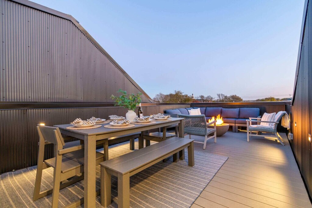 Feel at home in this brand-new 4-bedroom, 4.5-bathroom end-unit luxury townhome in the heart of Wedgewood-Houston, one of Nashville’s most dynamic and design-forward neighborhoods. Thoughtfully crafted for both comfort and style, this apartment features curated interiors, expansive natural light, a fully equipped kitchen with stainless steel appliances, open shelving, and oversized island with bar seating. Enjoy the spacious living area with a 55” TCL Smart TV, four private bedroom suites, each with its own full bathroom and Smart TV, a mini bar with mini fridge and half bath on the top level for rooftop entertaining, a private rooftop retreat with lounge seating, a gas fire pit, spacious dining table, skyline views, a washer and dryer for added convenience, and high-speed Wi-Fi and Smart TVs throughout for all your favorite streaming apps. Dog friendly with a $150 pet fee for up to 2 dogs. Free street parking is available. The Linden is perfectly situated in Wedgewood-Houston, a hub for Nashville’s art, music, and food scene. Walk to nearby favorites like Earnest Bar & Hideaway, Dozen Bakery, Diskin Cider & Jackalope Brewing, SoHo House Nashville, and Geodis Park. Commute Times by Car: Geodis Park – 5 mins (1.5 miles), The Gulch – 6 mins (1.8 miles), Broadway / Downtown – 7 mins (2.2 miles), 12 South – 8 mins (2.5 miles), and Vanderbilt – 9 mins (2.7 miles). Renters must be at least 21 years of age. Guests under the minimum age must be accompanied by a parent or legal guardian. The property shall not be used by more than the number of adults and children listed in your reservation. All guests shall not engage in illegal activity. Quiet hours are from 10 p.m. to 8 a.m. Refrain from using decorations that include glitter or confetti or using tape, tacks, or other adhesive on the surfaces. There will be an additional cleaning fee of up to $500 for violations of the house rules or for excessive cleaning required. Registration Number: [SI]
