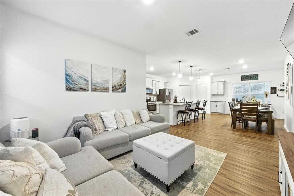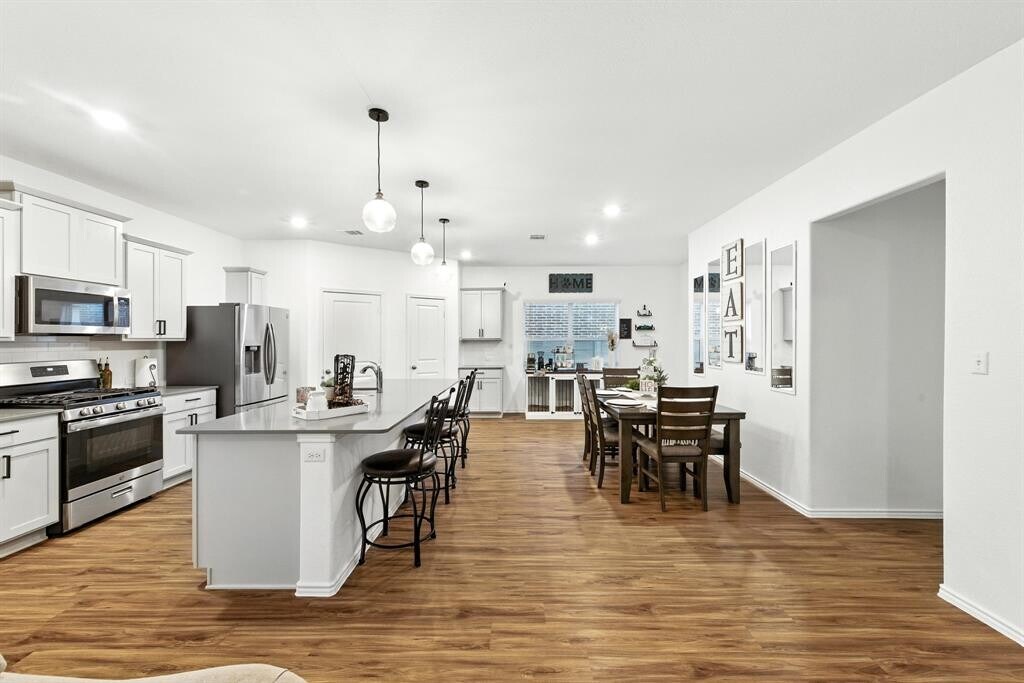 Welcome to this beautiful one-level home that perfectly blends comfort and style! Featuring 3 bedrooms and 2 bathrooms, this spacious property offers a fully equipped, modern white kitchen with stainless steel appliances, pantry, and plenty of cabinet space. The bedrooms include soft carpet flooring for added comfort, while the open layout fills the home with natural light. Enjoy the convenience of an included washer and dryer and a 2-car garage. Step outside to a stunning furnished patio—perfect for relaxing or entertaining—and a large, fully fenced backyard for added privacy. This home is warm, inviting, and ideal for anyone looking for a cozy yet updated space to call home!