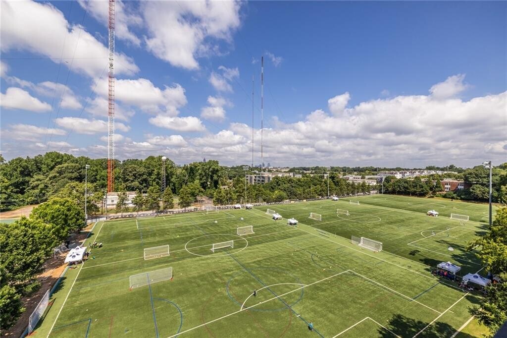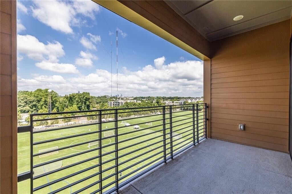 Welcome to contemporary urban living in the heart of Kirkwood! This nearly new,beautifully appointed 2-bedroom,2-bathroom 5th floor corner condo offers the perfect blend of style,space,and convenience,positioned directly across from the vibrant Pullman Yards development. Step into an open-concept masterpiece featuring soaring 10-foot ceilings and an expansive living,dining,and kitchen area that maximizes both form and function. The gourmet kitchen showcases sleek white cabinetry,elegant quartz countertops with waterfall detailing,premium stainless steel appliances,and a generous breakfast bar island—perfect for entertaining or everyday dining.. Floor-to-ceiling windows flood the space with natural light and offer picturesque views of the adjacent soccer field. The primary suite serves as your personal sanctuary,complete with a spa-like ensuite bathroom featuring dual vanities,an oversized walk-in shower,and a private water closet. The secondary bedroom includes its own full bathroom with granite countertops and a tub/shower combination. The unit includes one assigned parking space Residents enjoy access to premium amenities including a fitness center,rooftop deck with grilling stations and games area,an outdoor terrace with fireplace,and a convenient dog spa facility. This prime Kirkwood location puts you steps away from parks,diverse dining options,shopping,MARTA access,and the exciting developments at Pullman Yards. The neighborhood perfectly balances urban amenities with community charm.