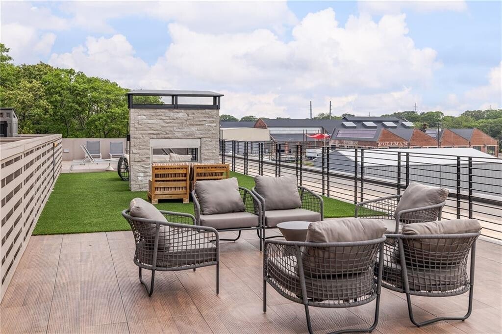 Welcome to this large one bedroom corner unit. Large side windows and covered balcony with privaate views. Bath with double vanities and extra large shower. Kitchen open to living area with quartz countertops,Washer/dryer and refrigerator. Pullman Flats is a Boutique condo in Historic Kirkwood right across from Pratt-Pullman District with restaurants,entertainment,events and more. Building has open roof top deck with 4th floor access with grilling station,dual sided fireplace and plenty of lounging space for gatherings. 6th floor has another open deck. 5th floor fitness center. Dog bathing area on fourth. Walk down Pullman Trail to shops and restaurants. Close to Marta. I-20,and parks. This has it all! A must see in fantastic area.