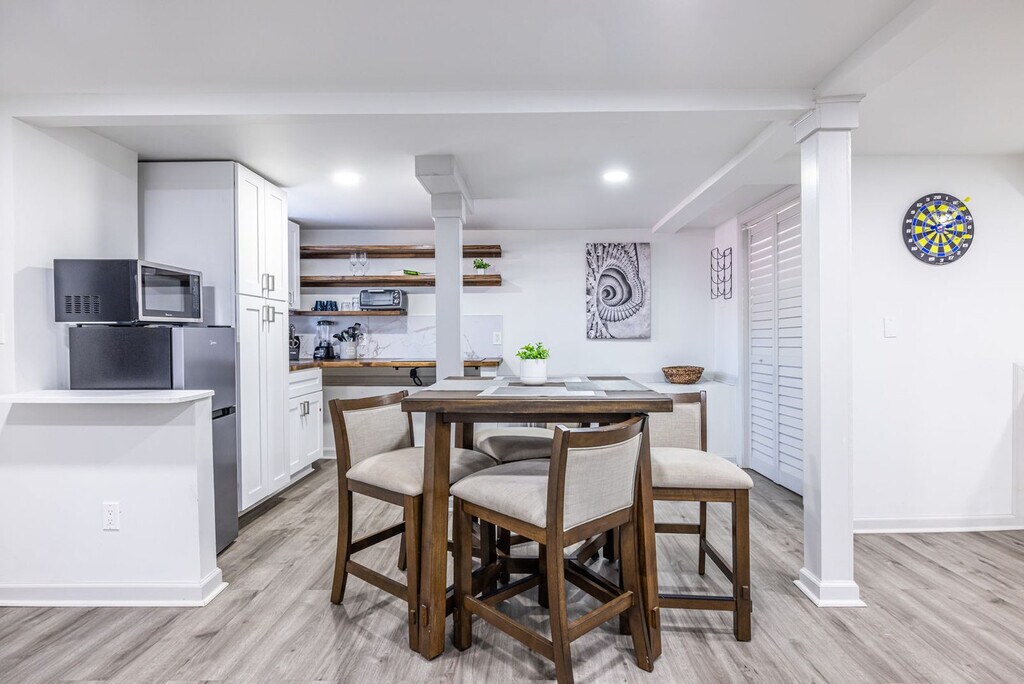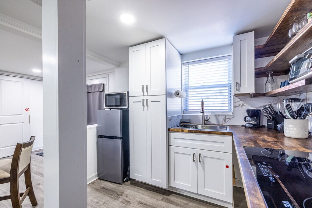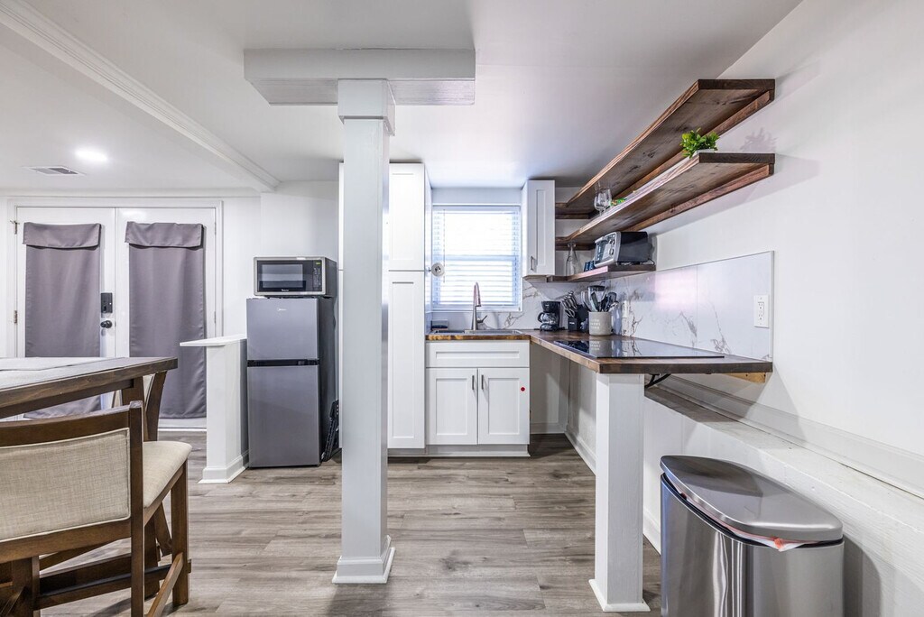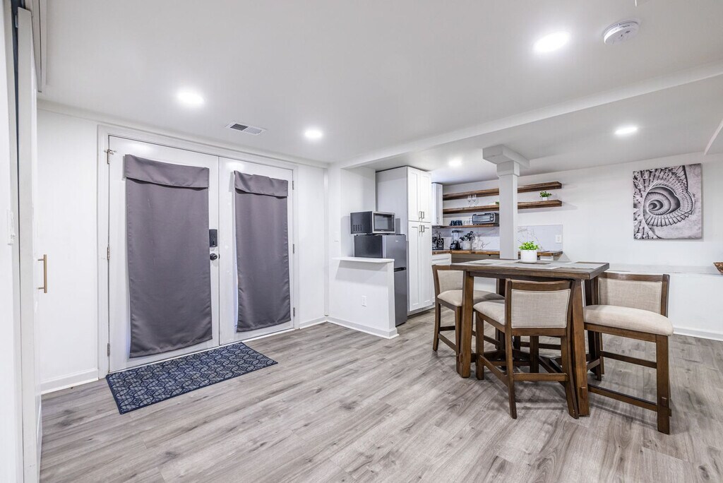 Welcome to this newly renovated 2-bedroom, 1-bathroom basement apartment, located on the lower level of a charming duplex. This modern and comfortable space features cozy bunk beds in one room and a queen bed in the other, ensuring a restful stay. The stylish living area and fully stocked kitchen, complete with cookware, dishes, and appliances, provide everything you need for a seamless experience. Situated just minutes from Southlake Mall, restaurants, and parks, with easy access to Hartsfield-Jackson Airport and downtown Atlanta, this apartment is perfect for both short-term and extended stays. Inside, you'll find a clean and thoughtfully designed layout with two bedrooms—one featuring cozy bunk beds, ideal for kids or additional guests, and the other offering a queen-sized bed for a restful night's sleep. The bunk room also includes a recently added workspace, perfect for remote work, study time, or planning your next Atlanta adventure. The living area is bright and inviting, furnished with a comfortable sofa, smart TV for streaming, and stylish touches that make the space feel like home. The fully stocked kitchen is equipped with all the essentials for cooking and dining in, including cookware, dishes, and full-size appliances. Whether you’re making a quick breakfast or a full dinner, you'll have everything you need to enjoy a seamless stay. The bathroom is modern and fresh, featuring a walk-in shower with updated fixtures. There’s also plenty of storage space throughout the apartment for longer stays, making it a great option for business travelers, families, or anyone in transition. Guests will have one dedicated parking space and additional free street parking nearby. This apartment is available for short, mid, or long-term stays, and is ready to welcome you with everything you need to feel right at home. Located just minutes from Southlake Mall, grocery stores, parks, and local restaurants, this apartment offers convenience and comfort. Travelers will appreciate the short drive to Hartsfield-Jackson International Airport, while commuters and explorers will enjoy quick access to downtown Atlanta via nearby highways. Outdoor lovers can take advantage of nearby parks and nature preserves for a breath of fresh air. No pets are allowed. A $200 charge applies if the no-smoking rule is not followed. Parties and events are not allowed, and there cannot be more than the allowed number of guests in or on the property at any one time, a violation could lead to the immediate removal of all guests without a refund. Please refrain from making noise past 11 PM. A late check-out fee of $50 applies for check-outs after 11:00 am if not authorized. Excessively dirty units will incur an additional cleaning fee. Guests who make reservations for over 28 days must sign a standard lease agreement and agree to a background check before check-in. If these policies are violated, it will result in your reservation being terminated with no refund and guests asked to leave the premises. The bunk room includes a recently added workspace, perfect for remote work, study time, or planning your next Atlanta adventure.