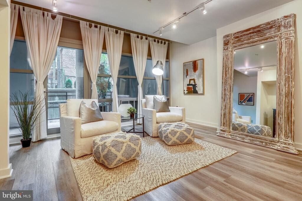 - Additional Property Details- Welcome to this stunning, exceptionally spacious 2-bedroom, 2-bath loft-style condo, offering a rare 1,630 sq. ft. of living space in the city. This remarkable unit comes with a range of incredible features, including floor-to-ceiling windows, beautiful hardwood floors throughout. The open concept floor plan creates a seamless flow from the generously sized living area, anchored by a cozy gas fireplace, to an elegant dining area. The kitchen is perfect for any aspiring chef, offering an abundance of cabinets, stainless steel appliances, and a gas stove for culinary adventures. The grand primary bedroom is truly a sight to behold, with its immense size and a private balcony that's ideal for enjoying outdoor relaxation. The primary bedroom also boasts an en-suite bathroom with a spa-like atmosphere and dual vanities for your convenience. If you need an extra bedroom or a home office, the den, which is located on the opposite side of a lengthy hallway for maximum privacy, is just the right size. A second luxury bathroom is located conveniently in the hallway. For added convenience, there's an in-unit washer and dryer that will make your everyday living a breeze. This boutique building is not only stunning but also pet-friendly and offers concierge services. As for the location, it's unbeatable with a walk score of 98. You'll find yourself just steps away from City Center, the Central Business District, 14th and U Streets, Convention Center, Chinatown, and with easy walking access to 3 metro stops (Metro Center, McPherson Sq., and Mt. Vernon Sq./7th St-Convention Center)! Rent Includes: Concierge, Common Area Maintenance, Trash Removal, Water, and Sewer. Lease Clauses: No smoking, and small pets are allowed.