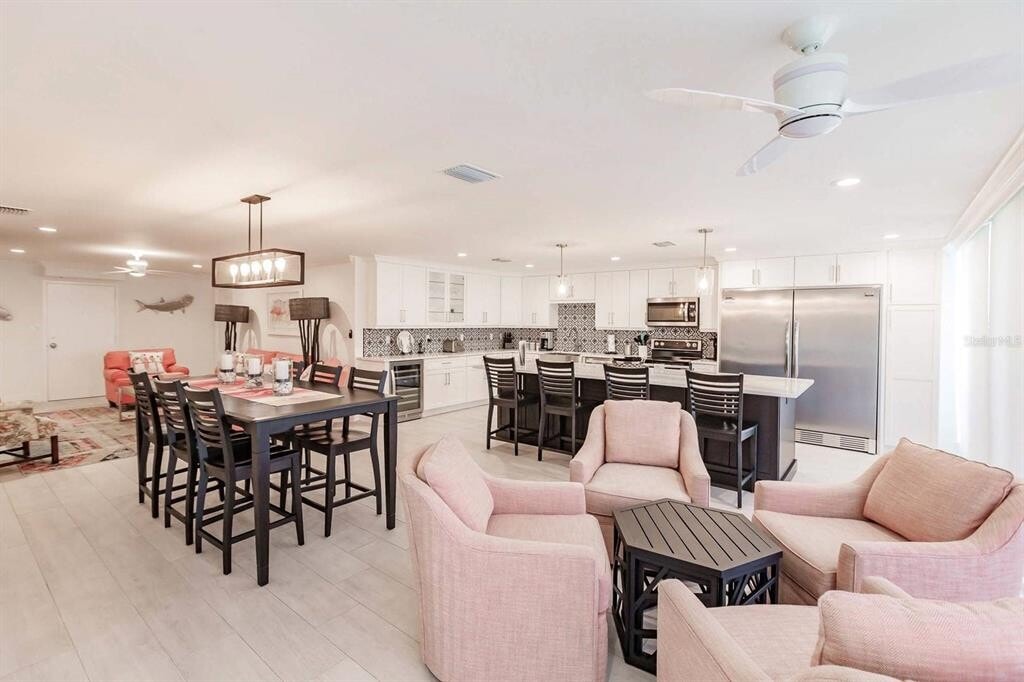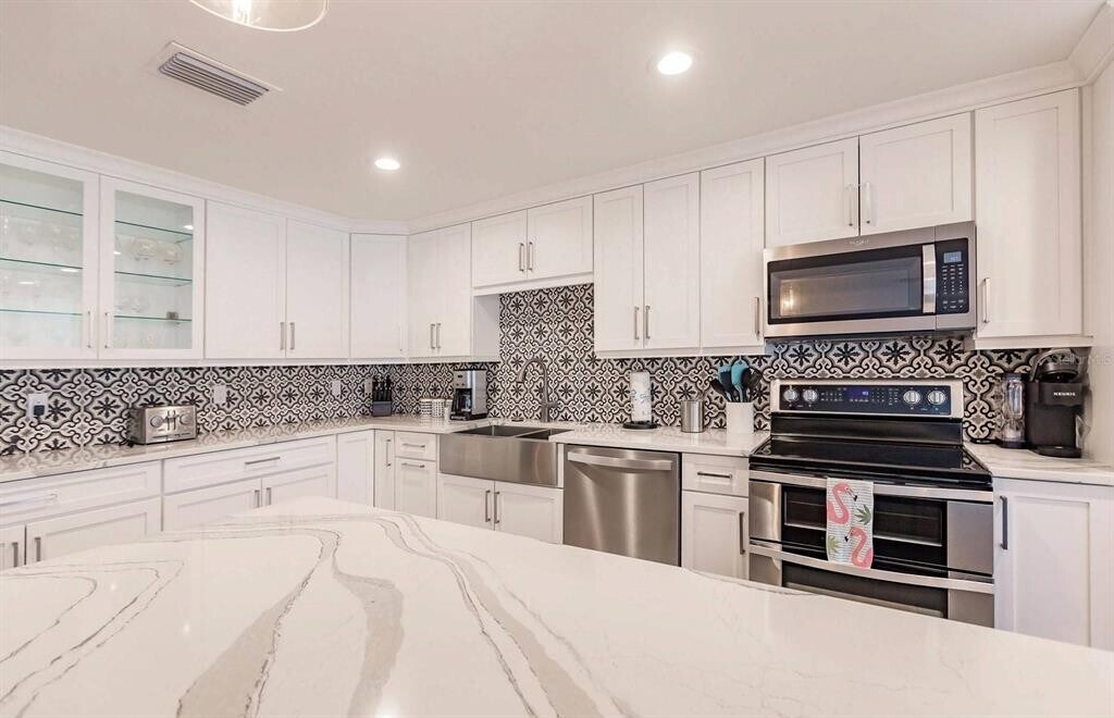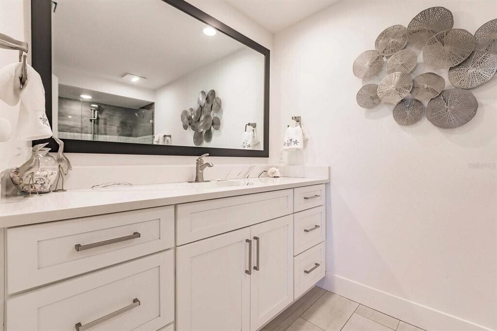 A 3 month stay is preferred but will accept a 2 month stay,possible 1 month. Call the office for details. Luxuriously remodeled 2 bedroom 2 full bath unit on the first floor in a gulf side high-rise building. The unit has updated wood tiles throughout,ceiling fans in each room,recessed and updated lighting. The kitchen is fully updated with stainless steel appliances,gorgeous counter tops,and new cabinets. Complete with an extra large island for preparing meals and a breakfast bar for 4. The dining area has comfortable seating for 6. Living room has a large flat screen smart TV and very comfortable furniture. Master bedroom has king sized bed,a smart TV,and lighted walk in closet. Master bath has a single sink,a walk in glass door shower,with a built in tiled bench,and a removable shower head. There is a space off the master bedroom with a desk and chair that can be used as a work,or office space. Guest bath is en-suite of guest bedroom,a single sink,and large walk in shower. The updated shower has a built in tiled bench and a removable shower head. Guest bedroom has 2 twins,a ceiling fan,and a TV. Enjoy incredible indoor outdoor living by opening the wall of sliding glass doors. Or keep them closed and allow for natural light to fill this gorgeous space. These doors give access to the concourse patio and seating for 6 available to relax. The patio has views of the gulf-side pond and garden. This unit has an assigned garage parking spot under the building. It is accessible via elevator and stairs. MLS# TB8465428