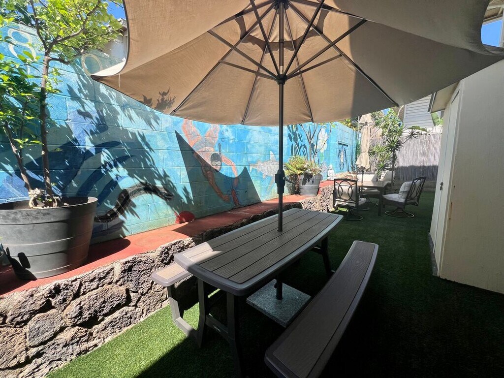 Private breezy fully furnished 2nd floor studio. Off-street reserved parking. INCLUDES ALL UTILITIES, such as electric, gas, water, trash, and pest service plus cable and WI-FI! To move in, $1250 (first month's rent) + $1100 deposit is required. Reserved Parking is $50/month or $20/month for scooter parking. Single occupancy. 1 year minimum lease. No smoking. No pets. Ceiling fans throughout. AC not included. Fully furnished studio with 2nd floor entrance. Bathroom with a shower and tub. Furnishings include a full size bed, bedside table, dresser, dining table with chairs, smart tv, and more. Also, includes a refrigerator, microwave, convection oven, 2 burner cooktop, coffee maker and other kitchen items. The closet is a nice size with 2 sliding mirror doors. Additional full kitchen in the common area of the building with additional selection of kitchen appliances (juicers, blenders, fryers, rice cooker, crock pot, etc). Aloha Abode has many common area amenities that give the building a community vibe among the residents. Building amenities include a community garden, pond w/ turtle "Queenie", BBQ, outdoor shower and patio dining area. There is also a community living room, dining room and kitchen. Bikes and surfboards available for use. On-site coin-operated washers and dryers on back patio in fenced back yard. Conveniently located in the Kaimuki/Kapahulu neighborhood of Honolulu. Walking distance to many stores, food, bars, etc. Less than a block to Chaminade University and to the rainbow shuttle to UH Manoa. Close to Waikiki, Diamond Head, Kahala, Ala Moana and the H1.