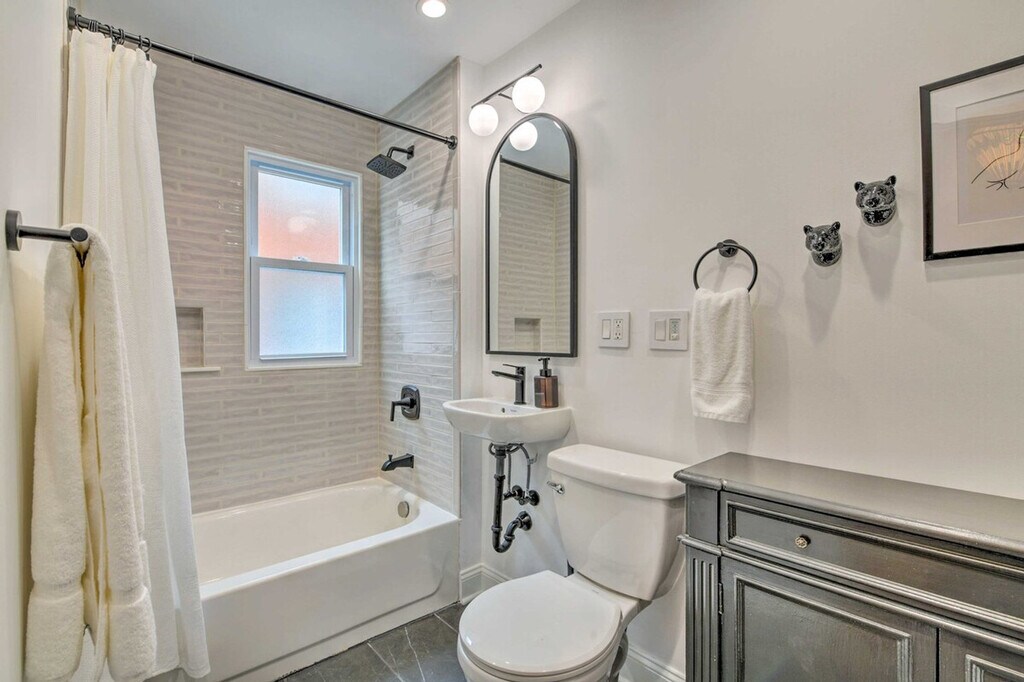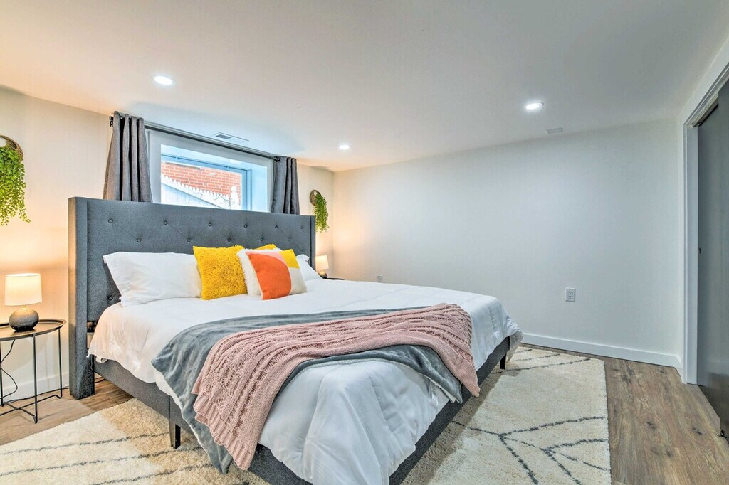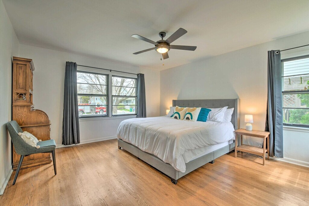 Experience Oak Park as the locals do when you stay at this 3-bedroom, 1-bathroom vacation rental home-away-from-home, ideally situated just minutes from downtown. Note that entry stairs are required to access the property. Feel at home in this property that offers a walkable location and self check-in. The main features include an 80-inch Smart TV, a 6-person dining table, a front yard, a side patio, and a shared grill. The fully equipped kitchen includes cooking basics, a coffee maker, a blender, dishware and flatware, a microwave, a toaster, and a water filter. General amenities include free Wi-Fi, central air conditioning, towels and linens, a hair dryer, hangers, an iron and board, complimentary toiletries, trash bags and paper towels, and keyless entry. Parking is available in the driveway for 3 vehicles, and street parking is available on a first-come, first-served basis. An additional 3-bedroom property for 6 guests is available on-site with a separate nightly rate. Enjoy Chicago pizza or local ice cream, a short walk away, or easily navigate to downtown Chicago via car or by train. Quiet hours are observed from 11:00 PM to 7:00 AM. There are 2 exterior security cameras: 1 camera is located on the front door and 1 camera is on the back door. The cameras are outward-facing and do not look into interior spaces. The cameras actively record video or sound while guests are in residence. No pets are allowed, and no events, parties, or large gatherings are permitted. Includes a laptop workspace. [SI]