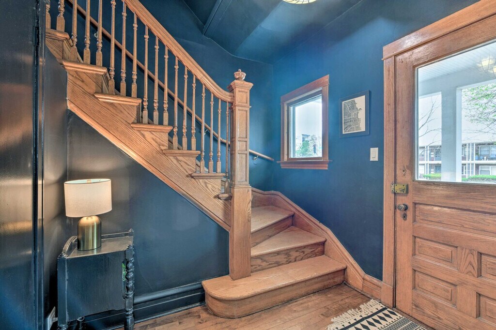 Feel at home in this inviting 3-bedroom, 2-bathroom duplex unit in Illinois. This main-level unit offers 2,400 sq ft of living space and requires entry stairs to access. This charming home offers a fully equipped kitchen, 2 Smart TVs with cable, a 6-person dining table, ceiling fans, an in-unit washer/dryer, and complimentary toiletries. The fully equipped kitchen includes cooking basics, a coffee maker, dishware and flatware, a microwave, toaster, and a water filter. Enjoy the private yard with a patio, an outdoor dining area, and a gas grill (propane not provided). Garage parking is available for 2 vehicles, and street parking is available on a first-come, first-served basis. Located just 1 block away from Chicago Ave, you can enjoy restaurants and a very popular ice cream parlor. The walkable location offers easy access to downtown Oak Park with the train to get to downtown Chicago just a few minutes away. Quiet hours are observed from 11:00 PM to 7:00 AM. There are 2 exterior security cameras: 1 camera is located on the front door and 1 camera is on the back door. The cameras are outward-facing and do not look into interior spaces and actively record video or sound while guests are in residence. [SI]