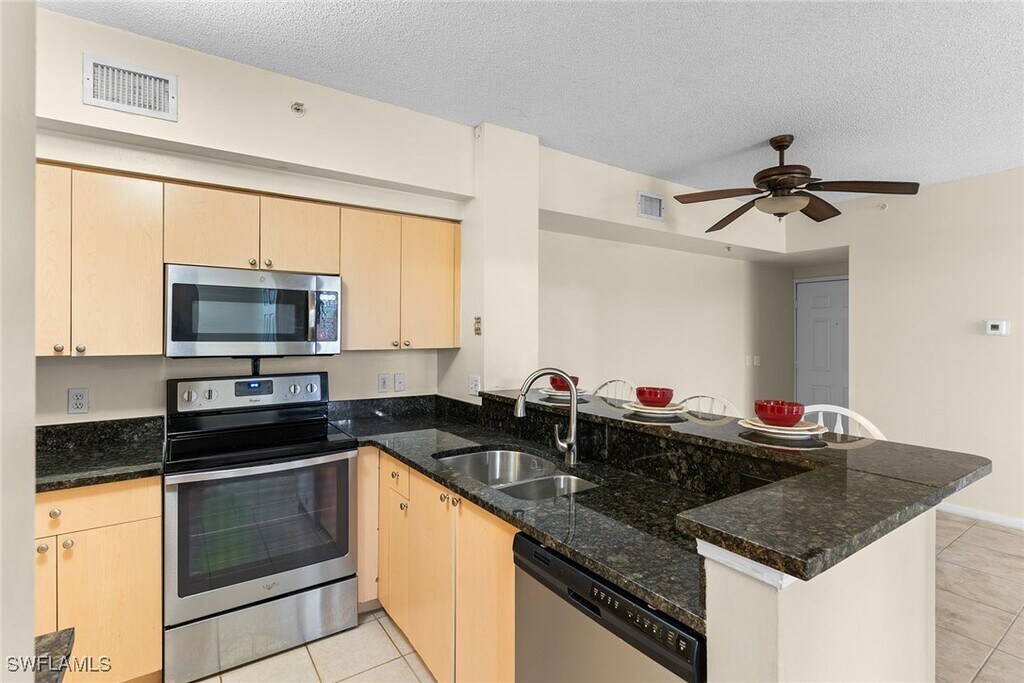 3 Bedroom/2 Bath Beautiful LAKE view with fountains from screened balcony. Features: currently Washer and Dryer, fans overhead, pantry area,blinds, microwave, dishwasher...lots of great extras for a annual. Cabinets in kitchen are a light wood grain. Bar stools at the kitchen bar. Optional balcony furniture too.Walk in closet in the Master Bath. Master has linen closet and tub/shower combo. The Reserve at Naples Condominiums has many amenities...peaceful pool and spa with grilling area and very pleasant seating at pond over look adjacent to the pool. There is tennis, fitness center, fenced playground too. TWO designated parking spots and Owner pays trash, water, and exterior pest control. What a great deal in Naples convenient to Hwy 75 and all central Naples shopping, dining, and beaches. Come enjoy this truly lovely sequestered spot right in Naples. You will love this community.