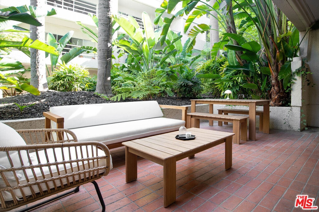 This serene one-bedroom, one-and-a-half bath courtyard unit awaits you at the coveted full-amenities building, Park Wellington. As you enter through the grand double doors, you will be greeted by gleaming wood floors that lead you to an updated contemporary kitchen featuring modern stainless steel appliances. The well-designed floorplan seamlessly connects the indoors to the outdoors with an expansive patio, creating a perfect extension of your living space. Spacious bedroom suite, complete with built-in closets, and a generously sized en-suite bathroom. Indulge in the luxurious resort-style amenities of the Park Wellington complex, which includes 24 hour reception, gorgeous resort style swimming pool and spa with a large sun deck and cabanas, tennis court, state-of-the-art fitness center, dog park, and on-site management. Located on a small closed end street ending at the Sunset Marquis with a pedestrian walkway leading to Sunset Blvd and Sunset Plaza, there are plenty of incredible restaurants, shopping destinations, gyms, and vibrant nightlife nearby. One parking space is assigned to the unit, with additional parking available for guests. MLS ID 26699161