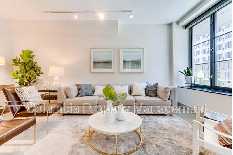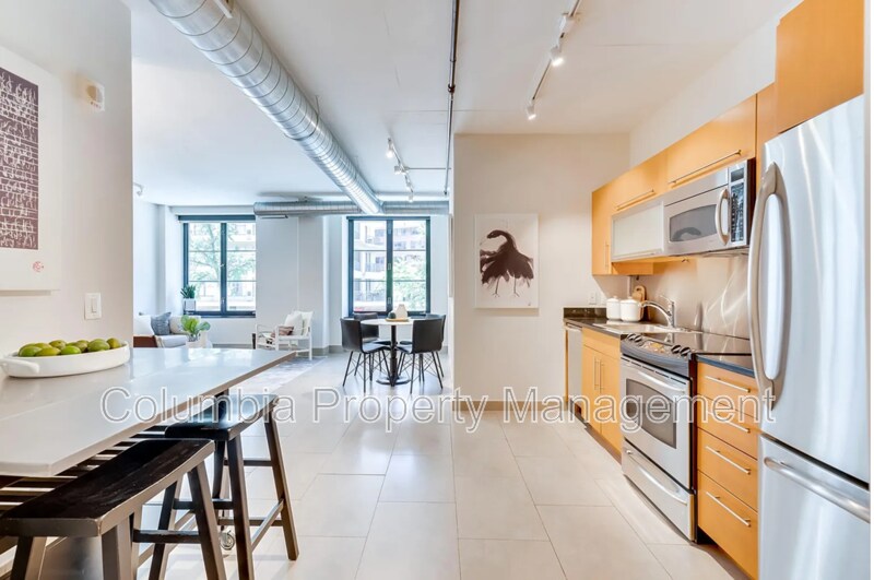 This spacious and modern one bedroom + den loft-style residence is located just off Thomas Circle along the vibrant 14th Street corridor. As you enter the defined foyer it opens into an expansive open-concept living and kitchen area. The living room is exceptionally large, easily accommodating a full sectional seating arrangement along with a dedicated dining furniture. Enhanced by high ceilings and oversized windows, abundant natural light bathes the space. The kitchen features granite countertops, stainless steel appliances, and an oversized movable island with seating. Just beyond, the primary bedroom offers generous proportions, excellent closet space, and a private en-suite bath. On the opposite side of the unit, a separate den provides flexibility for multiple uses such as home office, fitness corner, etc. and is served by a second full bathroom. The thoughtful layout makes it feel larger than its nearly 1,000 square feet. Set within a LEED-certified building constructed in 2006, residents enjoy access to a concierge, multiple elevators, a rooftop deck with sweeping city views, and a resident lounge with a kitchenette, fireplace, and terrace. The building also includes high-speed internet, and the unit features an in-unit washer and dryer. Tenants are responsible for electricity and telecommunications, with most other utilities included. Minimum one-year lease required. Pets are considered on a case-by-case basis with applicable deposit. All move-in/out fees are the responsibility of the tenant and payable to the condo association. Parking is available through a third party for approximately $275/month. Den is not a leagal sleeping area. With a Walk Score of 98, this location in Logan Circle / Shaw puts you just blocks from neighborhood cafes, grocery stores, restaurants, and nightlife. Logan Circle is one of DC's most walkable and vibrant neighborhoods, known for its historic architecture, local boutiques, and lively nightlife scene. Nearby green spaces include Logan Circle. Easy access to downtown and the residential areas north of Mass Ave NW. Multiple metro lines, with Mt Vernon Square (Yellow/Green lines) and McPherson Square (Blue/Silver/Orange lines) stations each a 10-minute walk away and Dupon Circle (Red line) a bit farther. For more information, a 3D Tour, and to see all of our available rentals, please visit our website. This rental is professionally managed by Columbia Property Management