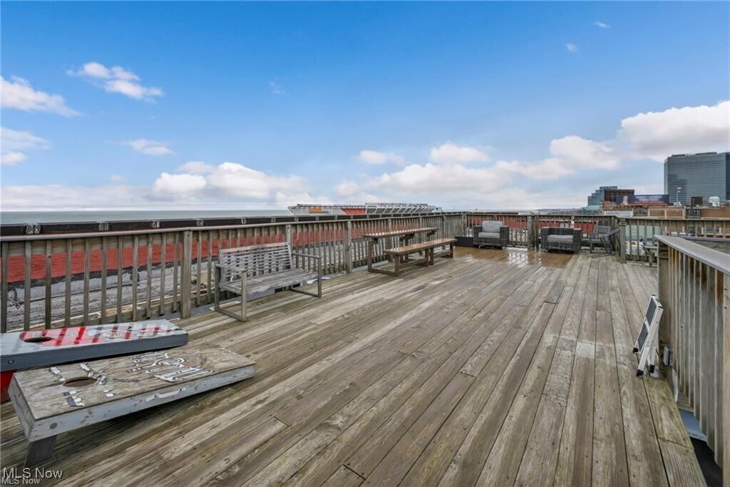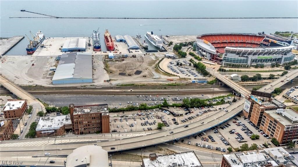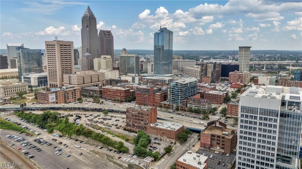 VIEWS!!! Absolute GEM in Downtown Cleveland with FABULOUS water and stadium views. In addition to gorgeous updates, this condominium comes fully furnished!!! The home has been modernized with new flooring in the in bedrooms, solid wooden doors, new hot water tank (2023), all new beautiful light fixtures. You'll love the home's tall ceilings, sleek flooring, and neutral colors throughout. The kitchen offers upgraded flooring, stainless appliances, ample cabinet space. The living room, with an updated ceiling fan, is situated on a raised level to showcase the fantastic scenery. The primary suite has an ensuite full bath, with refreshed tile, lighting & vanity, and adequate closet space. The roomy second bedroom boasts 2 large windows and is located next to the guest bath with new lighting. This condo is just perfection. Washer & dryer hookups are located in the closet near the front door. The building has an amazing rooftop deck with panoramic views of the City and has a workout room. Wonderful Warehouse District location, just steps from the East Bank of The Flats, grocery stores, nightlife, amazing restaurants! Move right into this perfect home in the City.