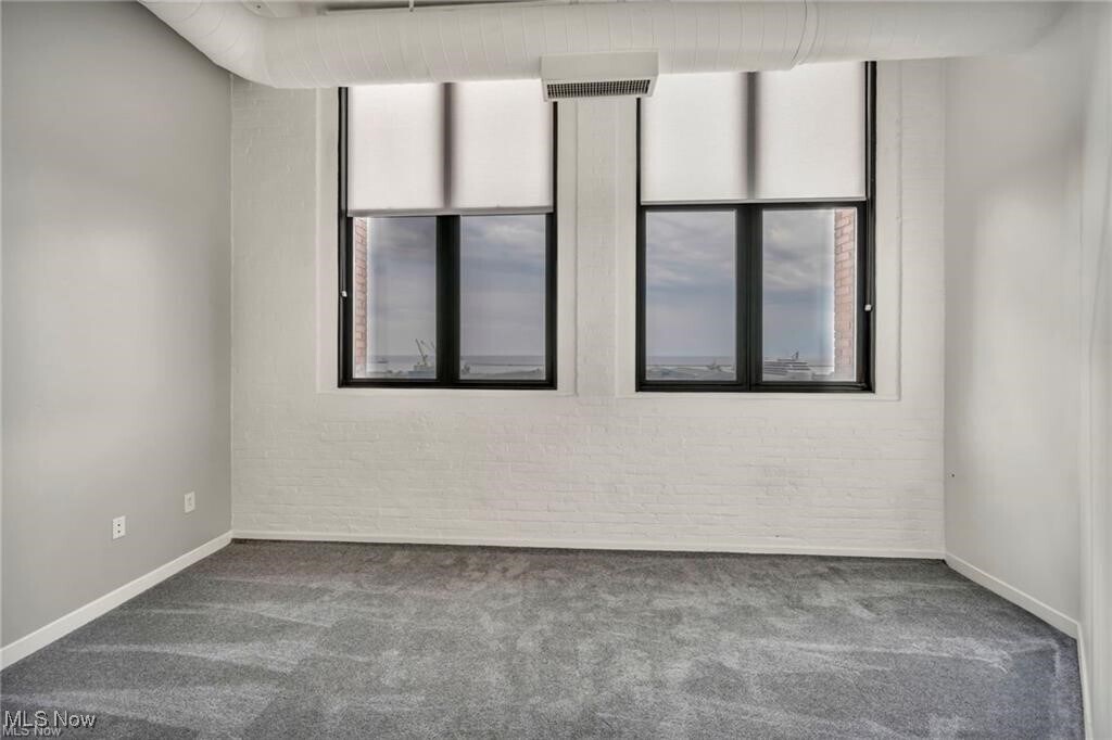 Just minutes from the east bank of the Flats, this lakefront condo in Cleveland's Historic Warehouse District boasts the best location in downtown Cleveland! This 2-bedroom, 1-bath loft condo with soaring, 12' ceilings features oak hardwood floors, a formal foyer with gallery space, and an open floor plan with large windows, allowing ample natural light and unobstructed Lake Erie views. The modern kitchen includes stainless steel appliances, granite countertops, and a spacious kitchen island. Recent upgrades include a large walk-in shower, hot water tank, a high-efficiency HVAC system, west facing black out remote-controlled blinds, custom fitted “window warmers” in all north facing windows (eliminates drafts off of Lake Erie), and a Nest thermostat. In addition to over $20K in new upgrades, the owners are also including an electric fireplace, bar stools and 50in smart TV. The in-suite laundry hookups and generous closets add to the comfort and functionality of the space. Additional amenities include keyless entry, a fitness center, a rooftop deck, and attached gated off-street parking. This location is a short walk to Cleveland’s finest waterfront restaurants and shops, grocery, and sporting venues. Unit comes with 1 parking spot in the attached, gated off-street surface lot for $120/month. Tenant pays for electric and internet/cable.