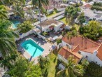 Captivating Spanish-style villa, nestled on a rare double lot in the heart of Hollywood Lakes. Beautifully curated estate featuring a main house with 2 beds and 1.5 baths, and two separate 1-bed, 1-bath guest houses, making it ideal for multigenerational or extended family living. Interior blends charm and sophistication with exposed wood beam ceilings, a fireplace, and a formal dining. The spacious layout includes soaring vaulted ceilings and comes fully furnished, ready for you to move in. Outdoors, your own private courtyard oasis awaits, featuring a resurfaced pool, lush tropical landscaping, and plenty of space to entertain or unwind. The estate’s prime location puts you minutes from the beach, Downtown Hollywood, Broadwalk, and FLL International Airport.