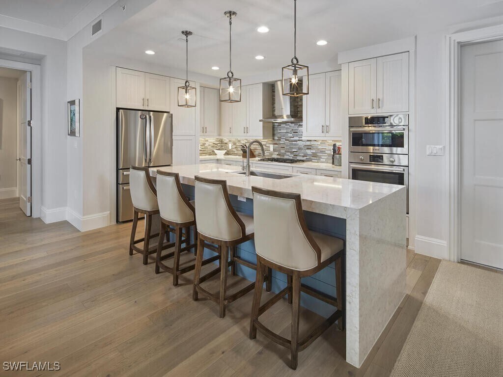 Step into unparalleled elegance in this 2-bedroom plus den Naples Square residence—the ultimate in resort-style living—offering over 1,800 sq. ft. of sun-drenched,open-concept space. Floor-to-ceiling windows and sliding glass doors illuminate a gourmet kitchen with Bosch appliances,quartz countertops,and a large island perfect for entertaining in style. The split-bedroom design ensures privacy,while the den with Murphy bed provides versatile space for additional guests or a home office. The owner’s suite is a true retreat,featuring dual vanities,a soaking tub,and glass-enclosed shower,while an oversized terrace overlooks lush,landscaped courtyards-your private oasis in the heart of Naples. Resort-style amenities include a sparkling pool and spa,covered grilling area,billiard and social rooms,fitness center,business hub,secure garage parking,and climate-controlled storage. Just steps from downtown Naples’ world-class dining,boutique shopping,and the charm of 5th Avenue,this residence offers refined,effortless living at its finest.