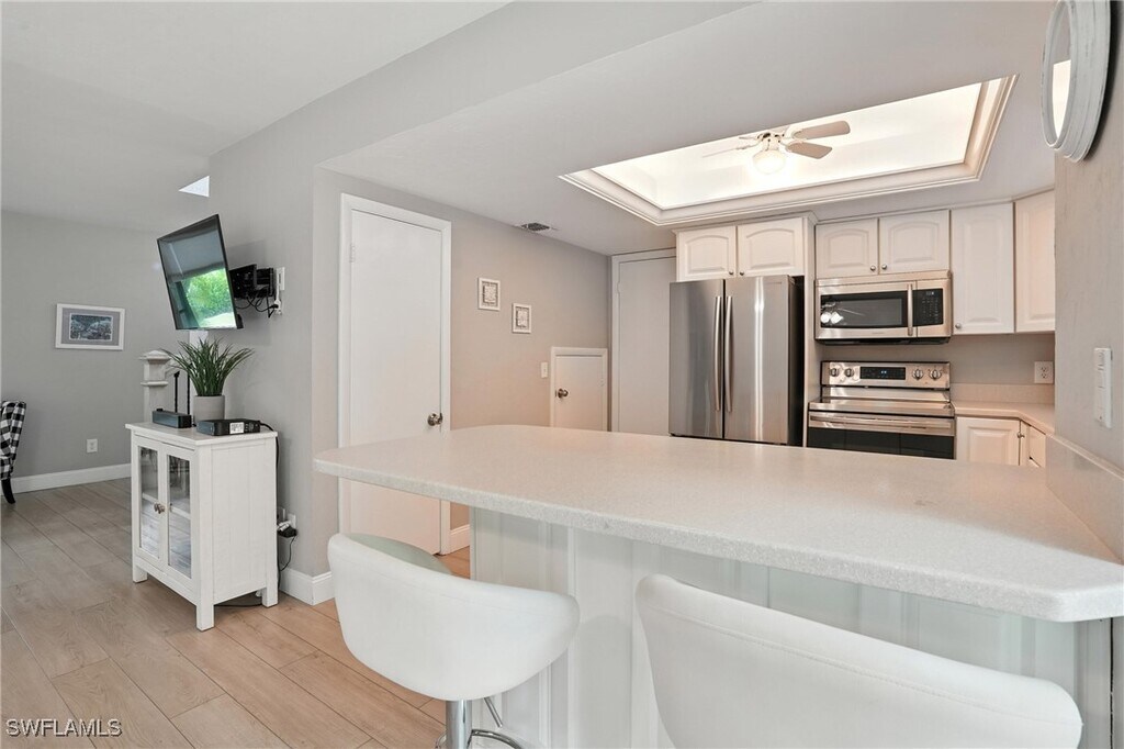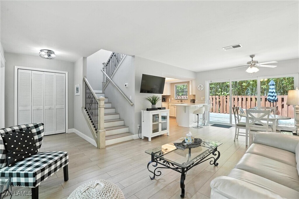 Step into the epitome of coastal elegance at 1140 5th Street South,Unit A,located in the heart of Olde Naples,where charm,convenience,and luxury converge. This beautifully appointed vacation rental offers the quintessential Florida lifestyle just a short stroll from the world-renowned 5th Avenue South,Third Street South,fine dining,boutique shopping,and the sugar-white sands of Naples Beach. Nestled on a lushly landscaped corner lot,this thoughtfully designed two-bedroom,two-bath residence seamlessly blends modern sophistication with classic beachside comfort. The open-concept living space features rich hardwood flooring,tastefully curated furnishings,and an abundance of natural light pouring in through expansive windows and glass doors. The gourmet kitchen is a culinary dream,boasting sleek granite countertops,high-end stainless steel appliances,and ample cabinetry for extended stays or entertaining. The inviting living room flows effortlessly into a tranquil private patio area,ideal for morning coffee or sunset cocktails under the tropical skies. Retreat to the serene primary suite,where soft coastal hues create a calming ambiance. The en-suite bath includes a walk-in shower and elegant finishes. The guest bedroom is equally well-appointed and shares access to a second stylish full bath,making this home perfect for couples,snowbirds,or discerning seasonal renters. Additional highlights include in-unit laundry,assigned parking,and proximity to Cambier Park,Naples Bay,and all the cultural delights the city has to offer. Whether you're enjoying a peaceful escape or soaking in the vibrant energy of downtown Naples,this property provides the ideal backdrop for unforgettable memories. Tenant also pays 11% taxes + a $750 non refundable seasonal reservation fee that covers the HOA application fees,departure cleaning fee,rental incidentals and booking fees.
