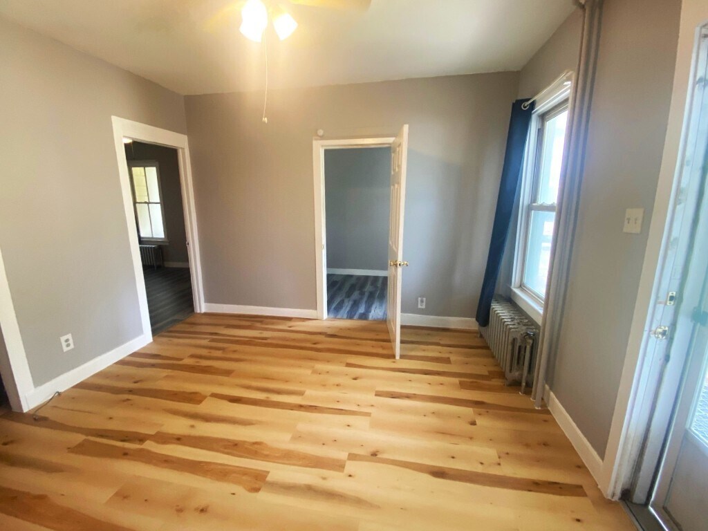Newly renovated,spacious,1st floor,2 bedroom apartment. Stove,refrigerator. New laminate floors. 1 off street parking space. Close to bus lines,hospital,university. Tenant is responsible for gas,electric,cable and city garbage bags. No laundry/dryer presently available. Application. Owner pays for the heat. Once approved,will need 1st month's rent,1 month security and brokers fee.