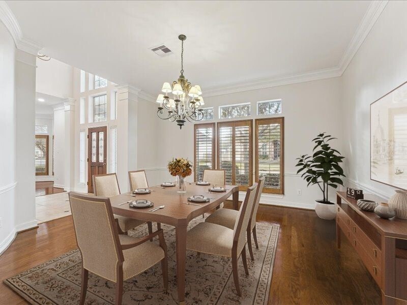 Experience the perfect blend of luxury and comfort in this stunning all-brick home in Shadow Creek Ranch. A grand entrance featuring an elegant curved split staircase leads from the formal areas to the spacious living room. Hardwood floors in the formal dining and den. Open kitchen with w/42" custom-built cabinets recently restored. The expansive first-floor primary bedroom features soaring 14-foot ceilings,a Hollywood bath with dual vanities,an oversized walk-in closet,and a newly renovated glass shower. Freshly painted interiors and new carpet upstairs. Located just 20 minutes from the TMC with easy access to HOV lanes. The second story includes a large game room prewired for surround sound,three additional bedrooms,and two full bathrooms. A spacious three-car detached garage and a private cul-de-sac lot with a serene lake view. Shadow Creek Ranch is an unparalleled lifestyle,featuring scenic walking trails,community pools,a splash pad,parks,and a clubhouse. MLS# 40998903