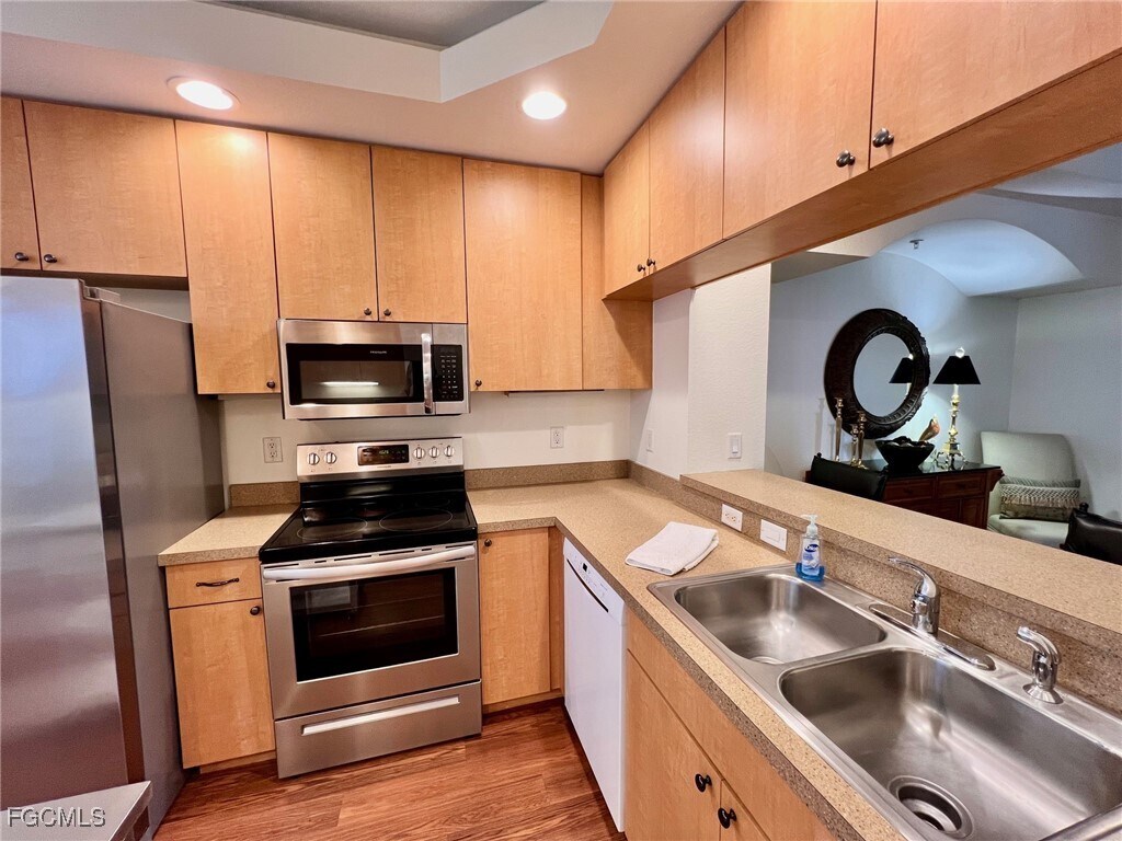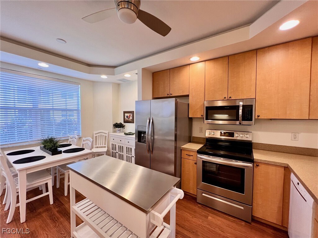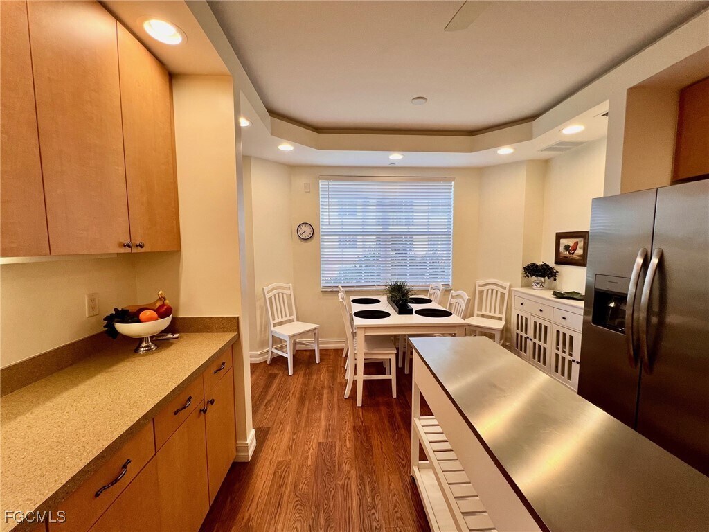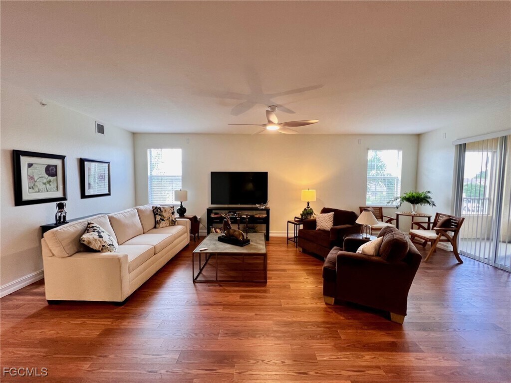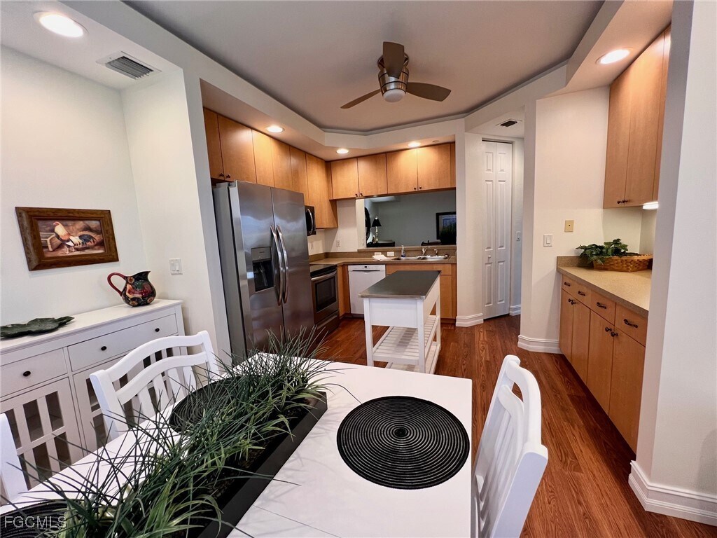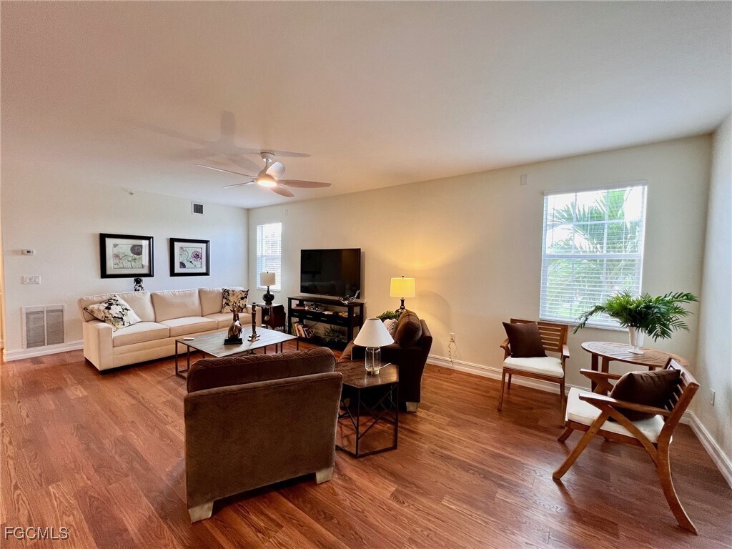 Step into comfort and convenience with this beautifully updated 2-bedroom,2-bath condo located on the second floor of a quiet corner unit. The airy layout includes a welcoming foyer that flows into a spacious living area,perfect for both relaxing and entertaining. The stylish kitchen offers stainless steel appliances,generous cabinet space,and a casual dining nook. The thoughtful split-bedroom floor plan provides a private primary suite with dual walk-in closets and a modern en-suite bathroom featuring a large,step-in shower. The guest bedroom is paired with a full bath that includes a tub/shower combo. Updates throughout the home include luxury vinyl flooring,new ceiling fans,and fresh interior paint. The unit is also equipped with an in-unit laundry room with a full-size washer and dryer,and wide interior doors for easy accessibility. Enjoy breezy evenings on the lanai,accessed through sliding doors from the main living space. Van Loon Commons is a gated community that offers something for everyone: pool and spa,fitness center,clubhouse with kitchen,walking paths,and a warm,pet-friendly atmosphere.