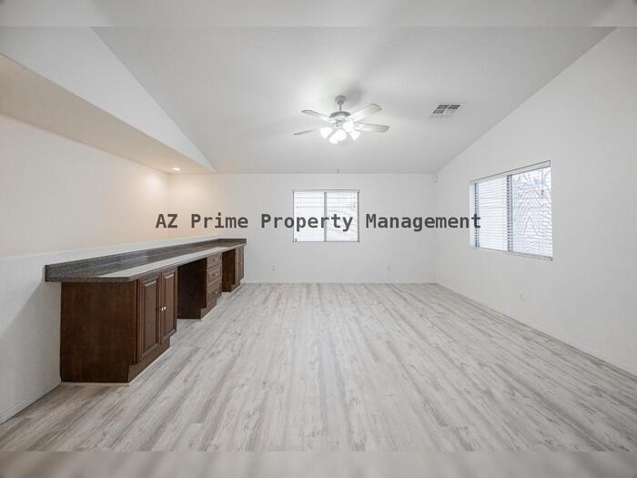 Discover the perfect blend of comfort and sophistication in this stunning 4/3 Surprise house. Step onto the exquisite tile and hardwood flooring that adds an elegant touch to the vaulted ceilings and spacious living room. The modern kitchen is a chef's dream, boasting ample storage space for all your culinary needs. Updated bathrooms exude a sense of luxury, while the cozy rooms offer a retreat for relaxation. Unwind in the master bedroom with its en-suite bathroom featuring a double sink and walk-in closet. The versatile loft can be transformed into a gaming or office space to suit your lifestyle. Enjoy the convenience of a washer and dryer, covered patio with an electric fireplace, and a wide backyard space with a firepit for outdoor gatherings. The 2-car garage completes this delightful abode, making it the perfect place to call home. Visit for additional pictures, videos, rental lease terms, and how to view property in person! *The information contained in this ad is accurate to the best of our knowledge. AZ Prime Property Management is not responsible for any errors or omissions in the wording or content of this information* Federal Occupancy Guidelines followed: Max 2 per bedroom + 1 additional occupant; Max 2 per studio. Please get in touch with AZ Prime Property Management for available move-in dates. Our Rental Homes Reflected are Rented in the Current Conditions at the Time of Viewing. AZ Prime Property Management Equal Opportunity Housing License #LC665152000 Designated Broker: Bonnie Burns #BR109023000 -Online Applications are located at AZ Prime Property Management under the "Online Applications" tab. -Affordable Renter's Insurance Thru AssetProtect. AZ Prime Property Management does not advertise on Craigslist or Facebook. This property allows self guided viewing without an appointment. Contact for details.