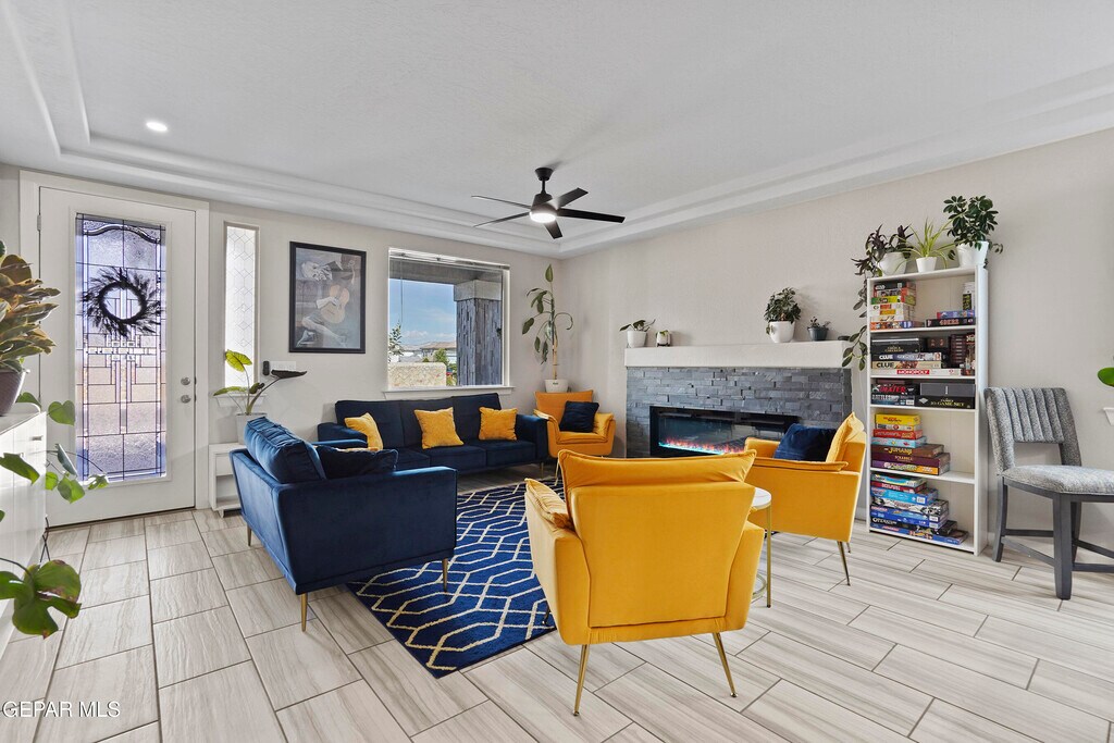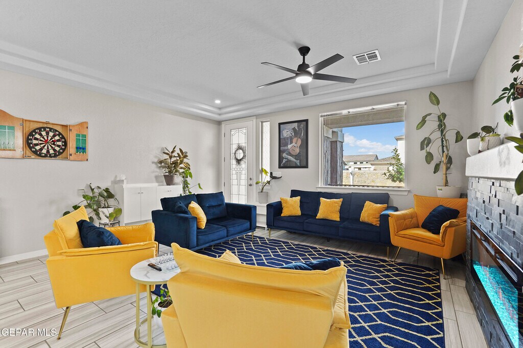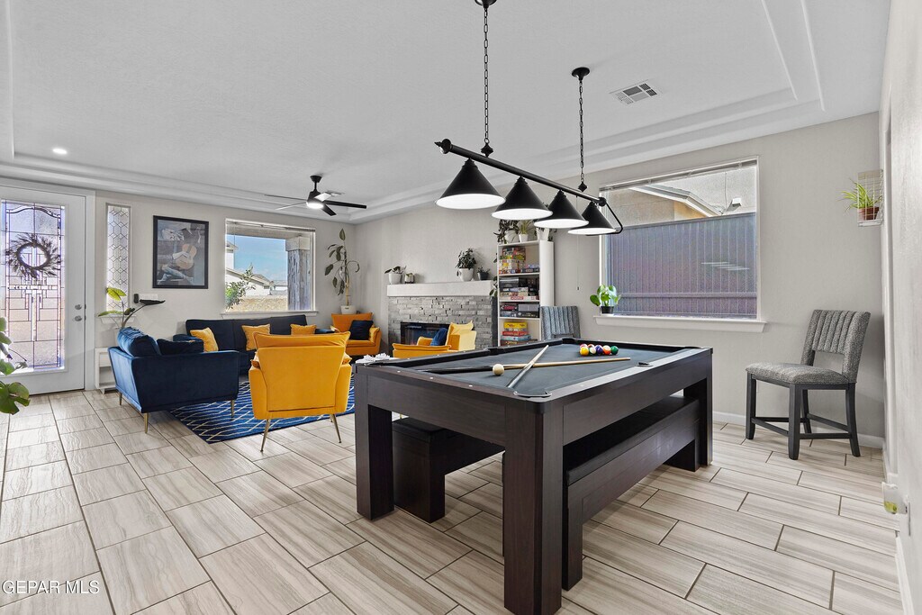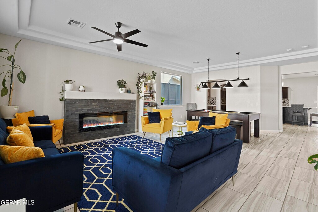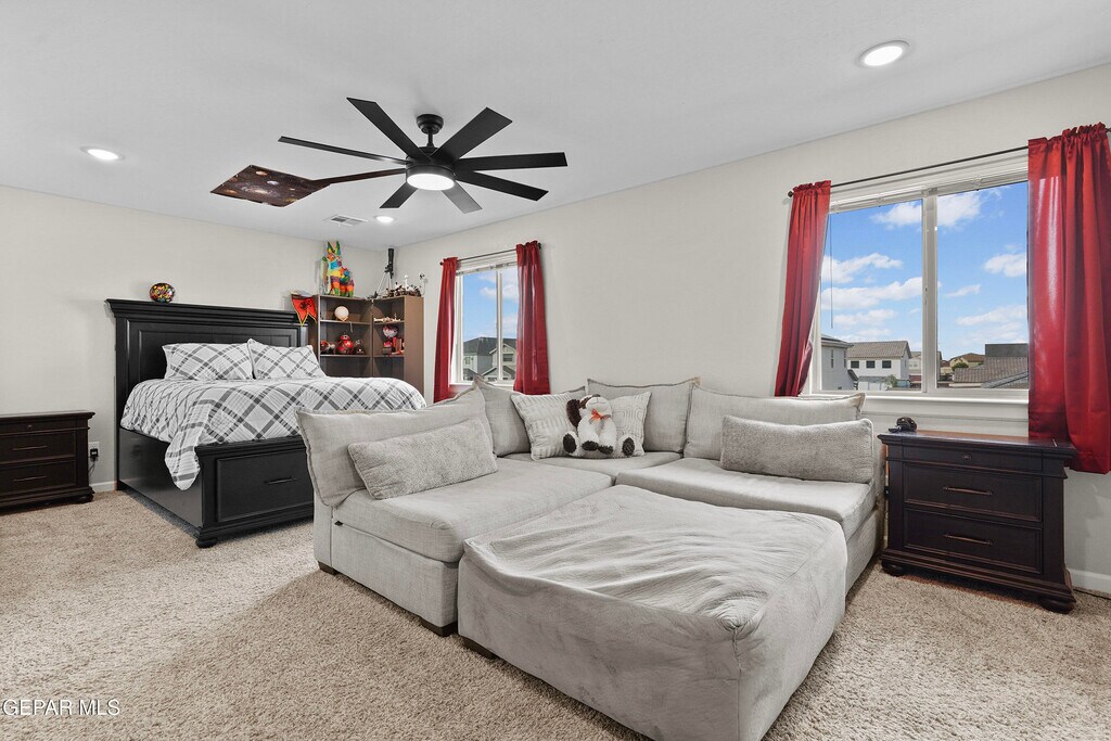 This home offers an impressive 3,094 sq. ft. of living space perfect for larger families or anyone seeking room to relax and entertain. This spacious 4-bedroom, 3-bath home features a massive living room with a cozy fireplace, a large upstairs loft ideal for a second living area or game room, and ceiling fans throughout for added comfort. The kitchen is designed to impress with a generous T-shaped island breakfast bar and includes all major appliances, including the refrigerator. Flooring throughout the home includes a mix of tile and carpet for both functionality and warmth. The exterior is landscaped with native desert plants for low-maintenance curb appeal. Located near top-rated schools, major shopping centers, and popular dining spots, this home also welcomes pets, making it the ideal space for your entire household. Don't miss your chance to lease this beautifully designed and spacious home. Schedule your showing today before it's gone!