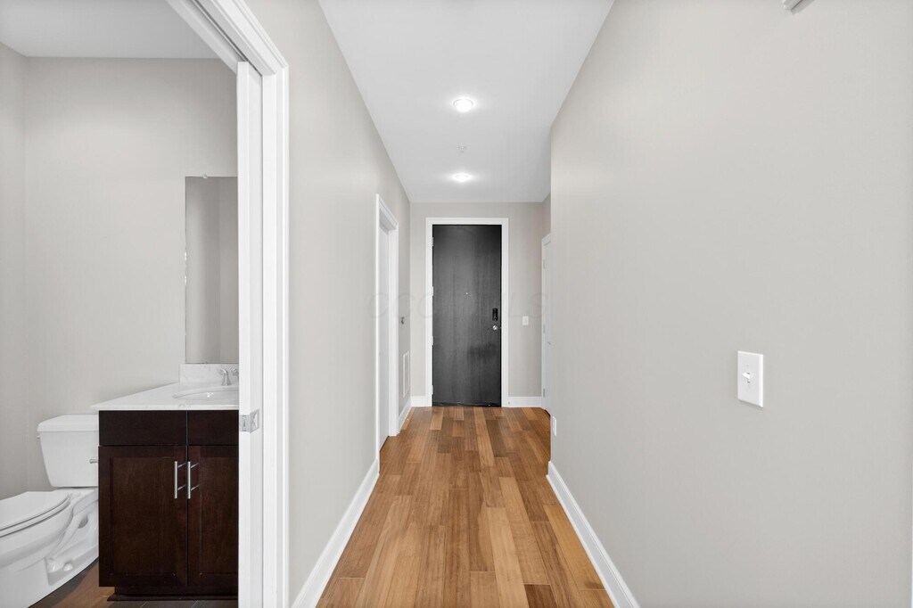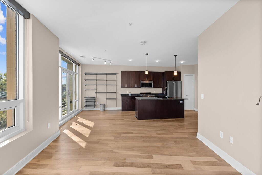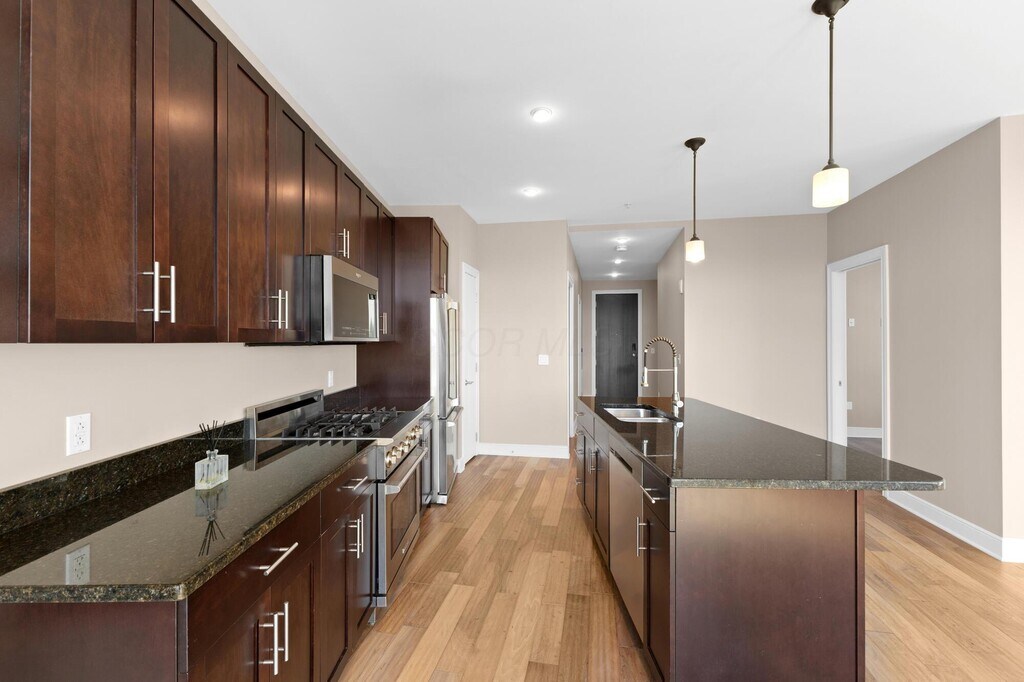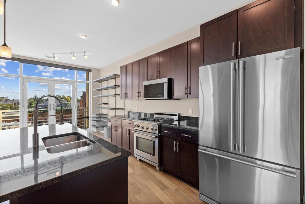 - Additional Property Details- Welcome to Jackson on High! Stunning 1-bedroom,2-bathroom unit is move-in ready,featuring floor-to-ceiling windows with custom remote-controlled blinds,an open kitchen with a large island,granite countertops,and stainless steel appliances. Located in a secure luxury building with an attached parking garage,rooftop deck,and pool,it's just steps from Short North and downtown. Washer and dryer convey—everything you need is right here!