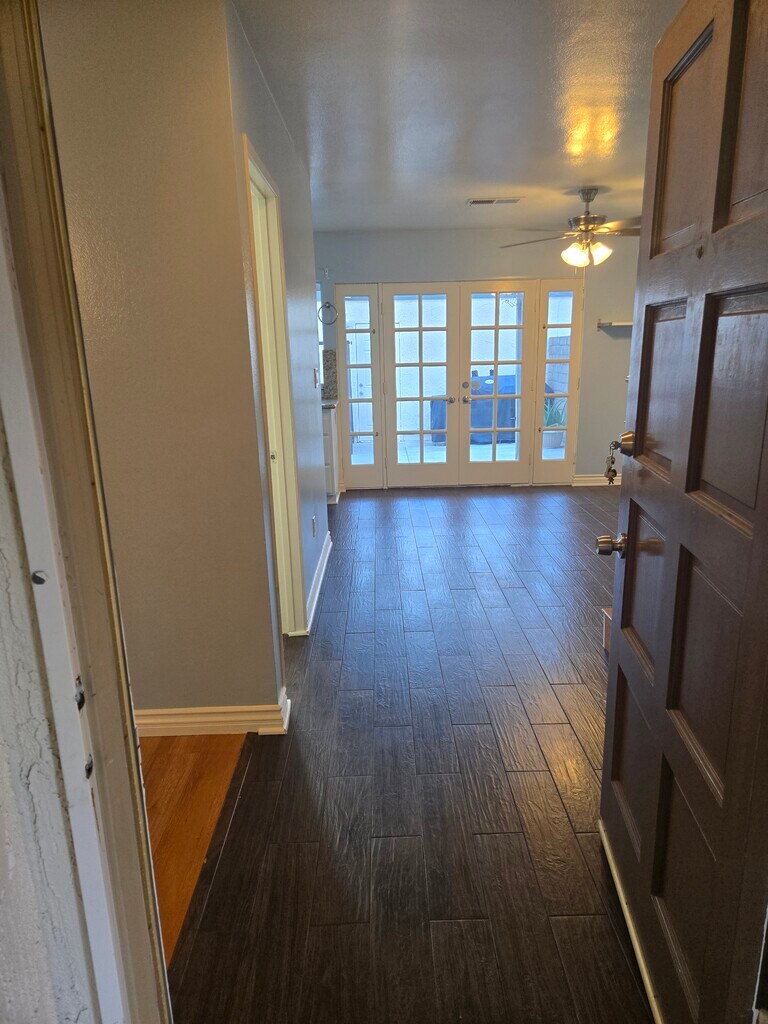 Upgraded Townhome in Desirable Cypress village Community Move-In Ready! Welcome to this beautifully updated 3-bedroom, 2.5-bathroom townhome offering 1,435 square feet of comfortable living space and modern upgrades throughout. Step inside to find rich laminate flooring, panel interior doors, and ceiling fans creating a stylish and welcoming atmosphere. The central A/C, new 50-gallon water heater, and upgraded furnace ensure year-round comfort. The dream kitchen boasts an abundance of high-quality cabinetry with pull-outs and a lazy Susan, topped with stunning granite countertops. Enjoy cooking with the new stainless steel gas stove and Bosch dishwasher. All three bathrooms have been tastefully remodeled with updated lighting and new sliding shower doors. The dining room opens to a private courtyard through elegant French doors with side vents, offering a perfect space for entertaining or relaxing outdoors. Each bedroom features spacious closets, and there are two private courtyards for added outdoor enjoyment. The home includes a convenient 2-car garage ,washer and dryer, and is located in a popular, amenity-rich community featuring: 3 swimming pools clubhouses Tennis and pickleball courts Meandering walkways perfect for strolling Located near top-rated schools, including Patton Elementary and the prestigious Oxford Academy, with nearby shopping and services for everyday convenience.