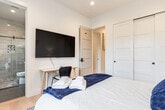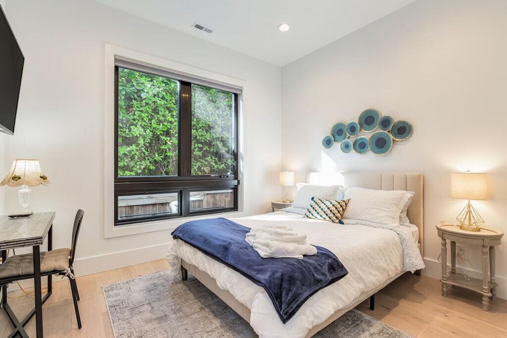 Feel at home in this luxurious 6-bedroom residence in Bellevue's prime neighborhood. This expansive home offers 4500 sqft of living space. This home is designed for comfort and flexibility, featuring ensuite bathrooms, in-room TVs, and generous living spaces throughout. The primary suite boasts dual walk-in closets and a private balcony. Two fully equipped kitchens are thoughtfully stocked with a full range of appliances, cookware, silverware, servingware, spices, coffee, and tea. Enjoy the convenience of three sets of on-site washers and dryers and central air conditioning for year-round comfort. All beds feature high-quality mattresses, premium linens, and plush duvets for a restful night’s sleep. Generous driveway and street parking are available. Located just steps from Bellevue Downtown Park, Bellevue Square, Old Bellevue Main Street, and top-rated restaurants, you’ll immerse yourself in the true essence of local living. Walk to the light rail for easy access to Seattle. The home includes a private backyard, perfect for relaxing, entertaining, or enjoying the outdoors. This is not a pet-friendly home, and there is a $500 fine for unauthorized pets. Strictly no parties and events are allowed, quiet hours are between 10 pm and 8 am, no smoking or vaping of any kind is allowed anywhere on the property including outdoor areas, no digital piracy is allowed, and no shoes are allowed in the home. There is a $500 fine per violation. Each bedroom has a working desk. [SI]