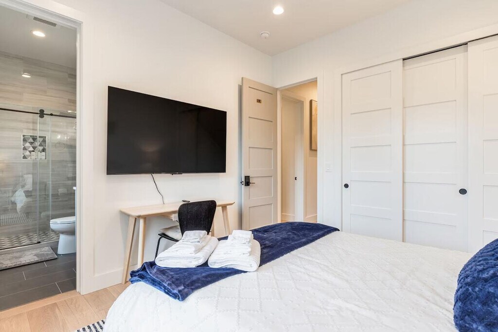Feel at home in this luxurious 5-bedroom retreat, located minutes from Bellevue Square. This two-story home offers 3500 sqft of living space and is just a few steps from the entrance. This home offers unparalleled comfort and convenience with ensuite bathrooms, bedroom TVs, a spacious living area, and a primary suite boasting dual walk-in closets and a private balcony. The kitchen is stocked with a full range of kitchen appliances, cookware, silverware, servingware, spices, coffee, and tea. All beds are outfitted with high-quality mattresses, linens, and a comfortable duvet. Onsite washer and dryer are available for your laundry needs, and the primary bedroom has an additional set. Enjoy central air conditioning for the Seattle summer heat and a smart TV for streaming with Netflix logged in for use. Very fast internet is provided. Ample parking is available on the driveway and in front of the home. Located in Bellevue's prime neighborhood, this home is just steps away from the downtown park, Bellevue Square, the art museum, shops, and top-rated restaurants. Walk to light rail to easily access Seattle. This is not a pet-friendly home, and there is a $500 fine for unauthorized pets. Strictly no parties and events are allowed, and quiet hours are between 10 pm and 8 am. No smoking or vaping of any kind is allowed anywhere on the property, including outdoor areas. Digital piracy and shoes in the home are prohibited, and there is a $500 fine per violation. All rooms have a working desk. **Important Update**: Starting January 24th 2026, this listing will include the daylight basement, upgrading this listing to a 6 bedroom, 5.5 bath home. The daylight basement has its own living room, kitchen and washer & dryer. Pricing for this home reflects this change accurately based on the dates selected. For pictures and further details of the daylight basement, please do not hesitate to send us a message! [SI]