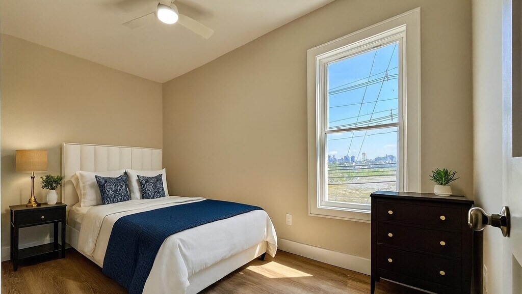 Welcome to 115 Carteret Ave, Unit 1 in Communipaw, Jersey City — a gut-renovated, spacious 3-bedroom, 1-bathroom home designed with modern living in mind. Step inside to a bright living room with high ceilings, a large primary bedroom with large windows, two additional bedrooms that fit queen beds, and a full bathroom. The home is perfect for flexible living, with multiple rooms that can be used for guests, a home office, or a flex space. The fully updated kitchen with all-new appliances, sleek finishes, and plentiful storage makes cooking a pleasure. Central heating and air conditioning and in-unit laundry with a stackable washer/dryer ensure full-time comfort. Every inch of this home has been thoughtfully upgraded for contemporary style and everyday function. Enjoy private outdoor living in your fenced backyard with views of the NYC skyline — an ideal space for morning coffee, grilling, or relaxing in the fresh air. Located in the vibrant Communipaw section of Jersey City, you’ll love the proximity to Berry Lane Park, local cafés, shops, and the Hudson-Bergen Garfield Light Rail stop— just around the block for effortless commuting to Downtown Jersey City or Manhattan.