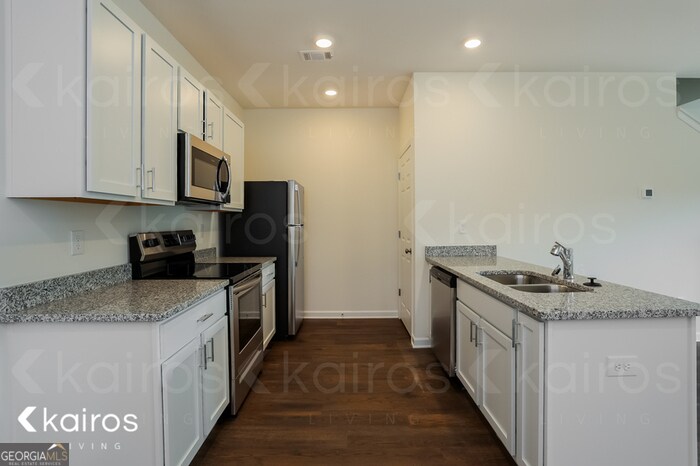 Gorgeous home in a beautiful neighborhood! This spacious 3 bedroom, 2.5 bathroom townhome in Cartersville features: Keyless Locks, Smart Thermostat, Primary Suite, Hardwood Floors, Granite Countertops, Stainless Steel Appliances, Open Concept Layout, Washer/Dryer Hook-Ups, Backyard Patio, and One Car Garage. Kairos Living has no pet restrictions and is happy to provide long-term leases and 24/7 Emergency Maintenance! Amenity Fees May Apply. Please Note: The advertised rent amount covers the base rent only. Additional monthly charges include a $29.99 Smart Home Fee and a $9.99 Utility Management Fee. Other charges, such as pet rent, may apply depending on your specific needs.