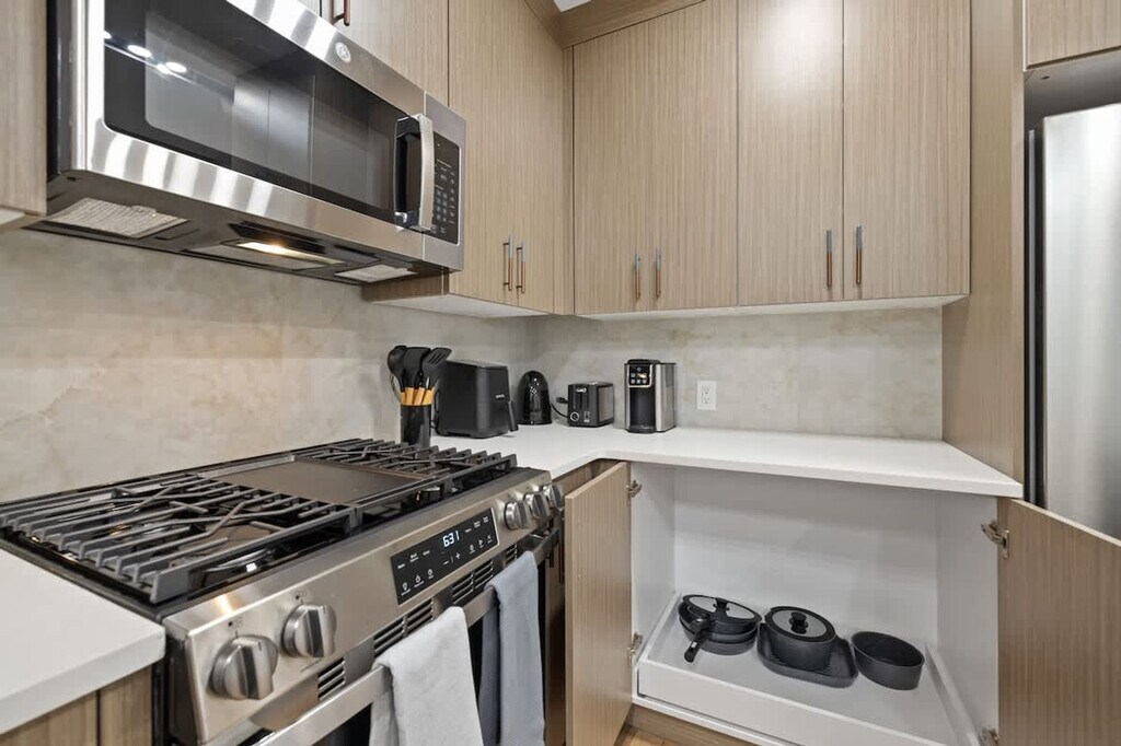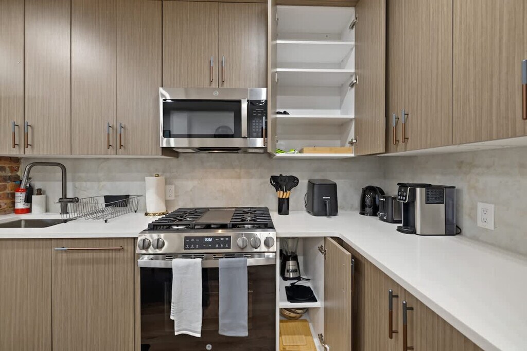 The advertised rate of $28,036/month is the lowest available price, based on a 1 month(s) stay with a move-in date of June 7, 2026. Rates vary depending on the duration of stay, season, and other parameters. For exact pricing and additional pricing components, please visit our website and enter your desired move-in and move-out dates. The rate is applicable when billed upfront; it can be higher if billed in multiple payments. Experience modern luxury and feel at home in this stylish 3-bedroom, 2-bath apartment just minutes from NYC. This apartment is located on the 3rd floor of a 3-story building. This chic space features Smart TVs in every bedroom and the living room, plus a PS5 for endless entertainment. Enjoy a fully equipped kitchen with stainless steel appliances including a stove, oven, microwave, refrigerator/freezer, and dishwasher. A coffee maker, toaster, blender, pots, pans, utensils, and glassware are all included for your convenience. The dining area comfortably seats six. Fresh linens, towels, and essential toiletries are provided. High-speed Wi-Fi keeps you connected throughout your stay. Conveniently located near restaurants, shops, and easy transit into NYC, this is your perfect home away from home. There are units below, so some normal building sounds may be heard. Street parking is free, but spots are first come, first serve, and a permanent space cannot be guaranteed. A $200 fine will be assessed for late departures. Smoking is strictly prohibited inside the property, and a fine up to $300 will be assessed if rules are violated. Parties or gatherings are strictly prohibited. [SI]
