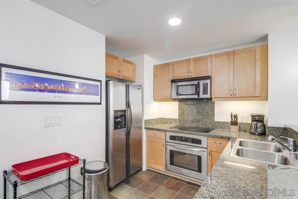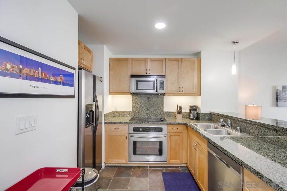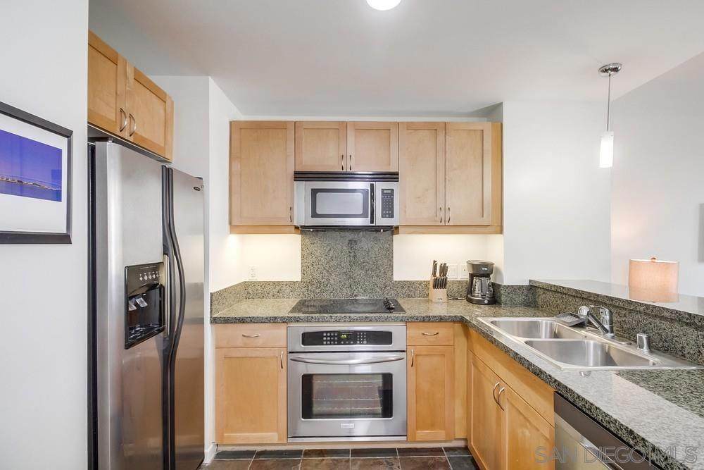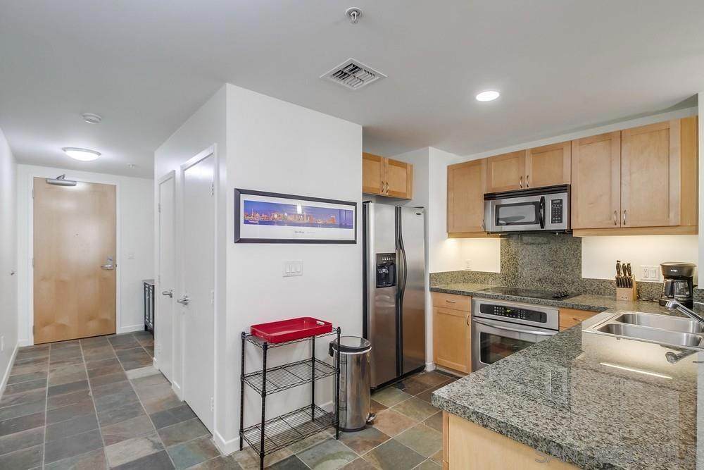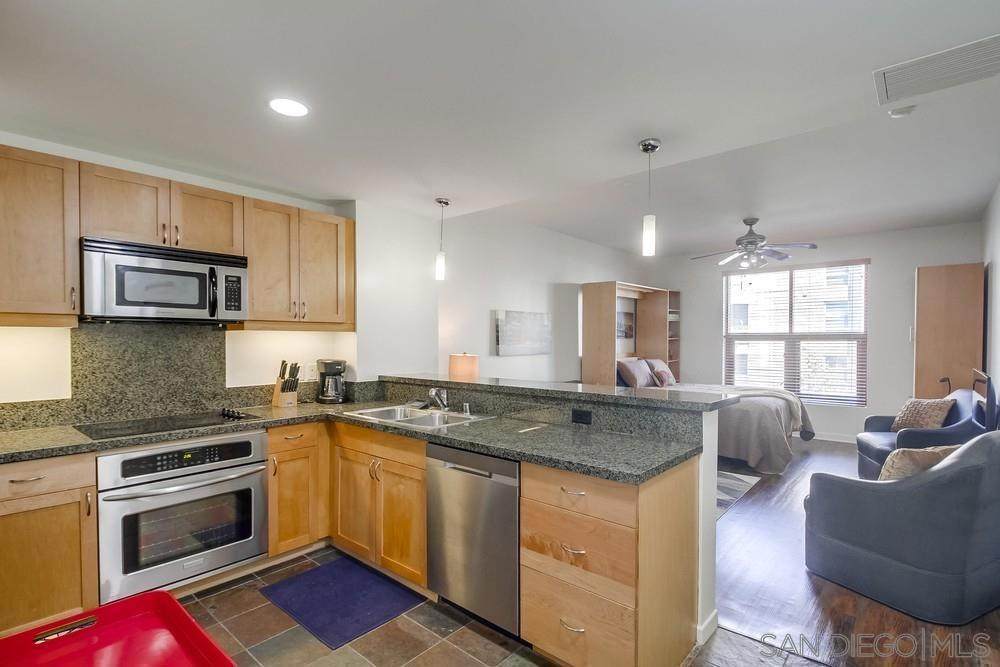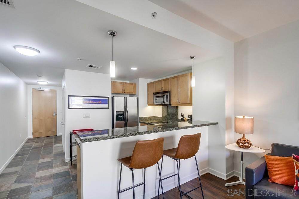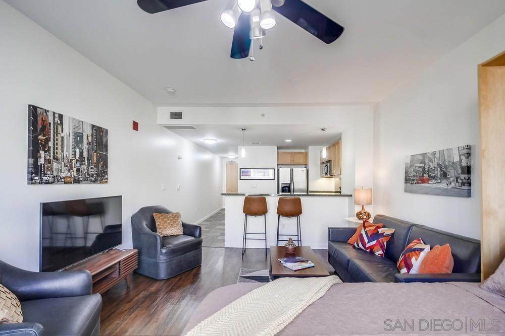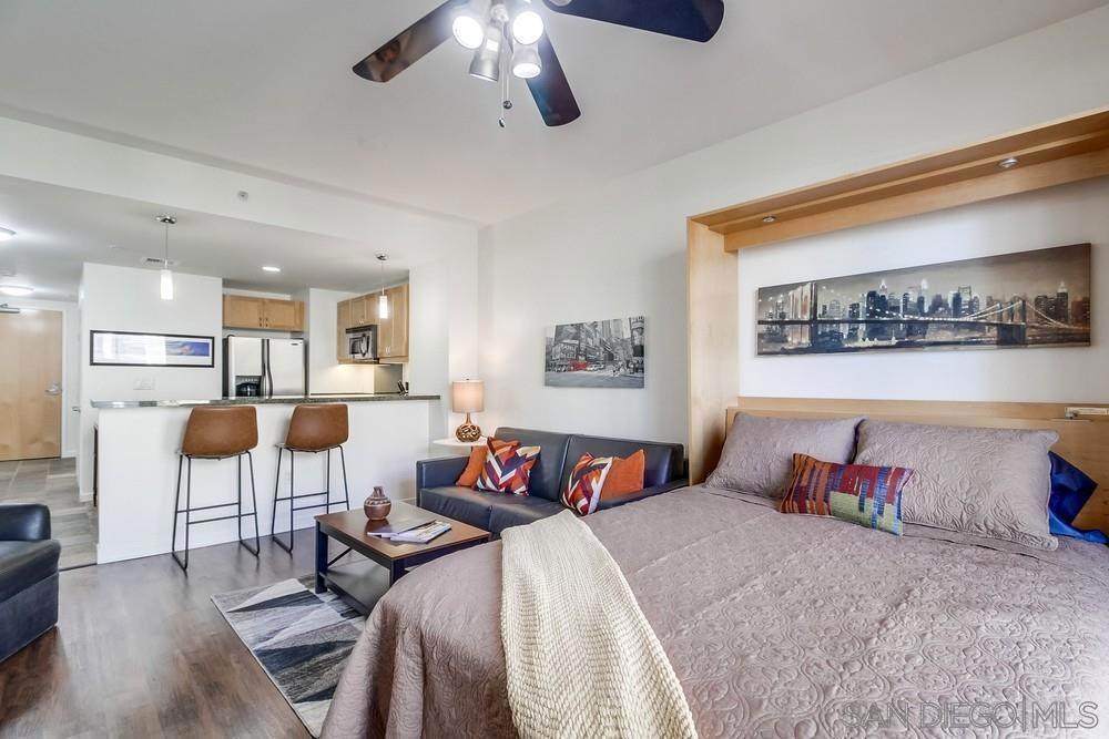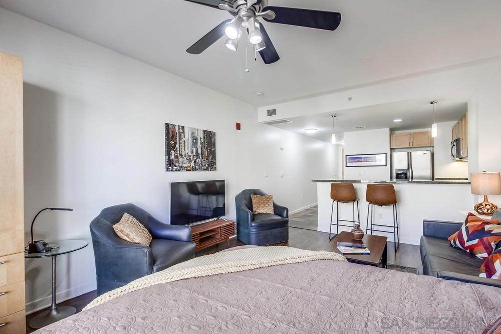 Step right into stylish East Village living fully FURNISHED and ready for you to enjoy today! Just bring your suitcase and settle into this spacious studio with soaring ceilings, city views, a comfy bed plus sleeper sofa, 1 bath, 1 parking space, and storage. The updated kitchen shines with cherry cabinets, granite counters, and stainless-steel appliances. Relax in your quiet retreat or take advantage of top-notch community amenities including a fitness center, BBQ area, community room, and 24/7 security. Outside your door, you'll find everything walkable award-winning dining, cozy cafes, trendy boutiques, live entertainment, the Little Italy Farmer's Market, Waterfront Park, Petco Park, Balboa Park, Seaport Village, and more. Even the train, trolley, and airport are just minutes away! Available for both short- and long-term leases (1-month minimum). Don't miss the chance to make this vibrant, turn-key home yours schedule a tour today and experience the very best of East Village living!